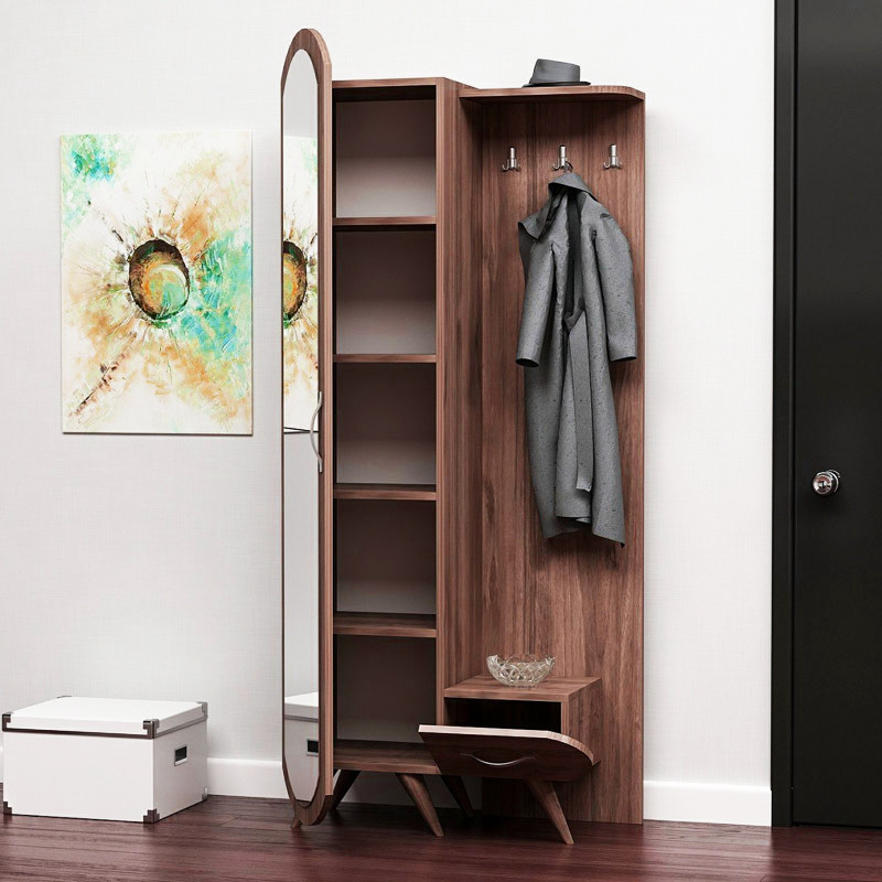 از آنجا که بیرون از منزل همواره آلودگی هایی غیر قابل مشاهده بوده و هست. کیف و لباس و کفشها به طور ناخودآگاه با زمین و درب و دیوار و ... در تماس هستند، این موارد میکروارگانیسمهای زیادی با خود همراه دارند، مطالعات نشان میدهد که حتی در سطوح خشک نیز میکروبها مدتهای زیادی زنده باقی میمانند. بنابراین کیف و کفش و لباس های بیرونی نباید به هیچ وجه مستقیم به محل استراحت سرایت کنند. محل استراحت ما حریم شخصی است و همانطور که اجازه نمیدهیم افراد غریبه وارد حریم شخصیمان شوند، میکروبها را هم نباید وارد حریم شخصیمان کنیم. در این راستا یک سازه کمدی شامل جاکفشی و رخت آویز بسیار شیک و کمجا طراحی کرده ایم که میتواند در دروازه ورودی آپارتمان فضای مناسبی برای کیف و کفش و لباسهای شما به وجود آورد. جاکفشی رخت آویز مدل DLF76L از جنس لترون درجه یک ساخته شده. همه امکانات و اکسسوری های قابل تعبیه شدن در کمد را می توانید در عکس ها مشاهده بفرمائید، لطفا برای انتخاب رنگ دلخواه نمونه رنگ در تصاویر را بررسی کنید.