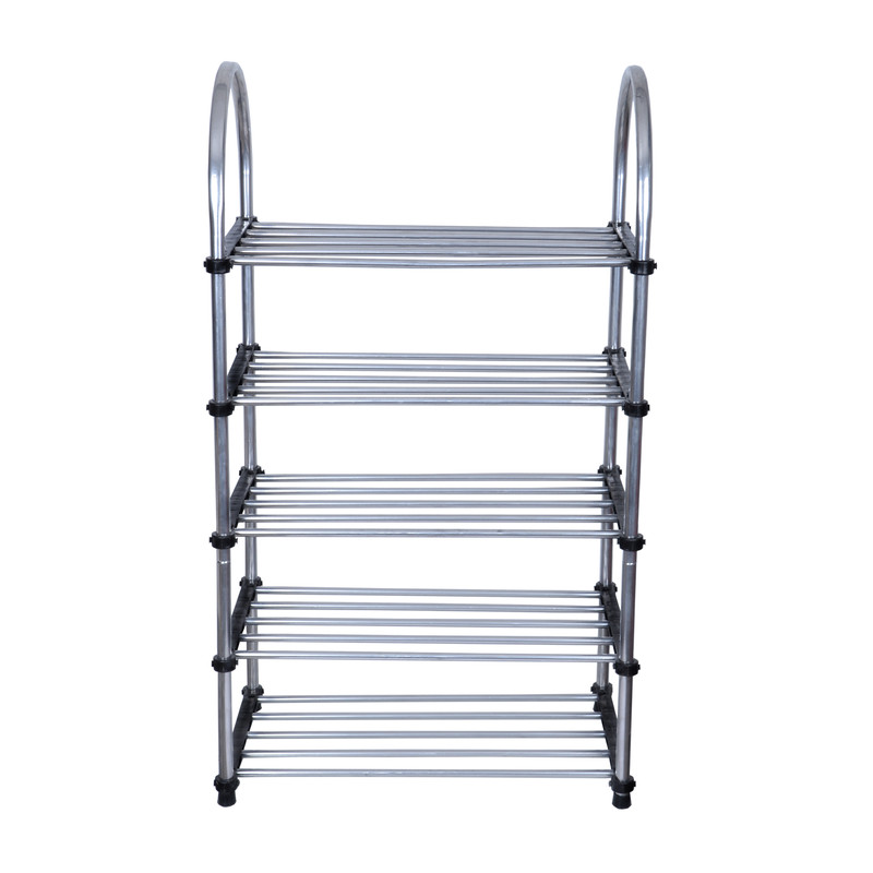 امروزه استفاده از جاکفشی در منازل به خصوص در آپارتمانها یک وسیله ضروری است و کمک بسزایی در مرتب کردن و نظم دادن به کفش ها و صندل ها... میکند. طول طبقات جاکفشی55سانتی متر است که با این حساب در هر طبقه دو کفش بزرگسال و یک کفش یا دمپایی بچه گانه قرار میگیرد.فاصله طبقات نیز به اندازه کافی برای کفش های بلند تر رعایت شده است. این جا کفشی از لوله های فولادی به قطر 10 میلیمتر با جوش CO2 به هم متصل شده و با پوشش رنگ استیل پوشیده شده است. این جاکفشی در پنج طبقه 55 سانتیمتری به ارتفاع85 سانتیمتر و عمق 35سانتیمتر که فضای کافی برای نگهداری کفشهای با ساق بلند را به شما می دهد. در خصوص محصولات فلزی وزن آنها بسیار مهم است زیرا کیفیت و استکحام آنها را نشان میدهد پس این موضوع را بعد از تحویل کالا نیز برسی کنید. وزن این محصول 2700گرم است.