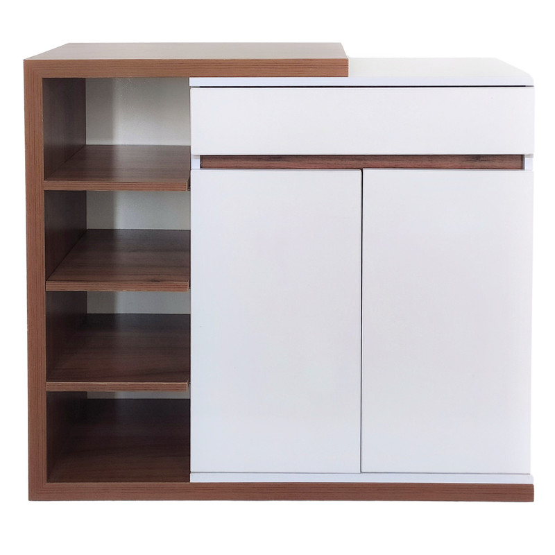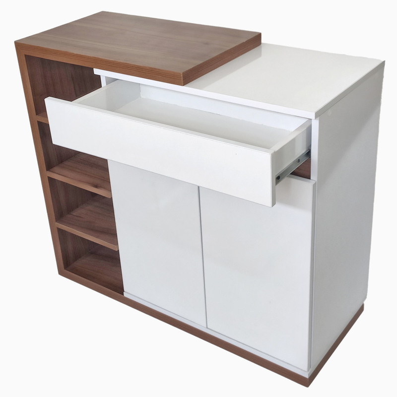 این مدل جا کفشی در عین سادگی ، نمای فوق العاده شیک و لاکچری به پاگرد شما می دهد . مدل دو رنگ الهام گرفته از مدل های شیک و بروز خارجی و سایت های مطرح بین المللی ساخته شده است به همین خاطر نمایی لوکس به پاگرد شما میبخشد . جاکفشی مدل دو رنگ دستگیره مخفی از MDF پاک چوب درجه یک تولید شده و از یراق الات با کیفیت در کمد و کشو آن استفاده شده است . تا حد امکان سعی شده که پیچ در نمای آن استفاده نشود . در مدل لوکس از دستگیره استفاده نشده و دستگیره آن مخفی میباشد . ابعاد 90 سانت عرض ، 80 سانت ارتفاع ، 35 سانت عمق