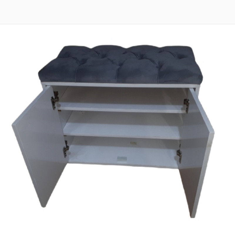این مدل جاکفشی با چوب سفید (رنگ چوب ثابت است و تنوع رنگی این مدل پارچه نشیمن میباشد) و تنوع رنگ پارچه مبلی های مختلف به راحتی با فضای منزل ست شده و زیبایی خاصی برای ورودی منزل شما فراهم میکند گنجایش 9 جفت کفش دارد رویه کوبی مبلی چستر می باشد درب های مگنت دار است لولا های آرام بند می باشد