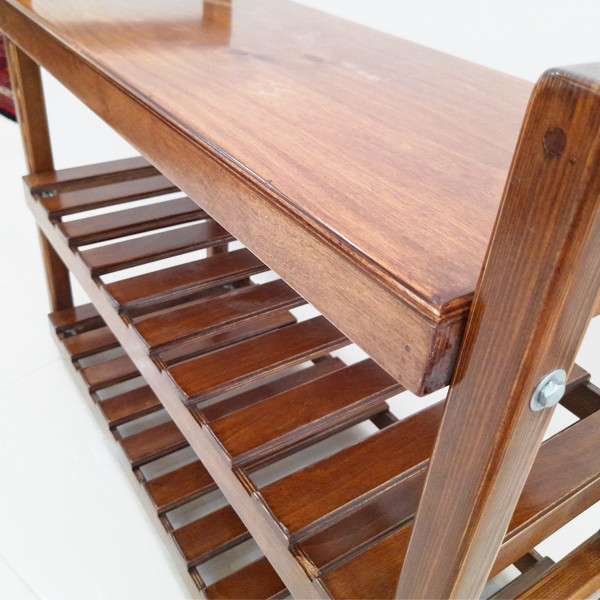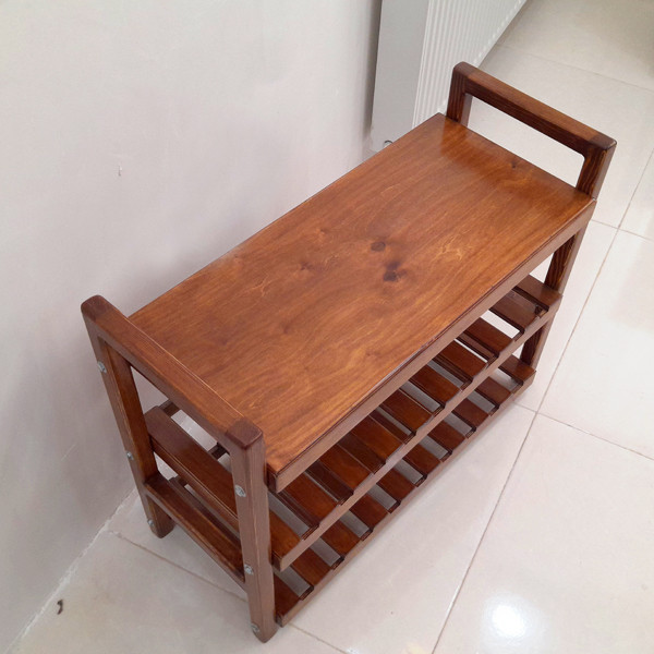جاکفشی چوبی دارای نیمکت میباشد (طبقه اول جاکفشی برای نشیمن 2 نفر (وزن تحمل 90 کیلو) طراحی شده است از چوب روسی بسیار باکیفیت ضد رطوبت وحشره ساخته شده است.پرداخت کامل چوب و رنگکاری کامل مات وبراق جاکفشی مناسب هر نوع چیدمان که شما بخواهید.