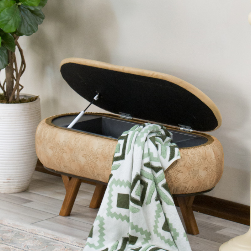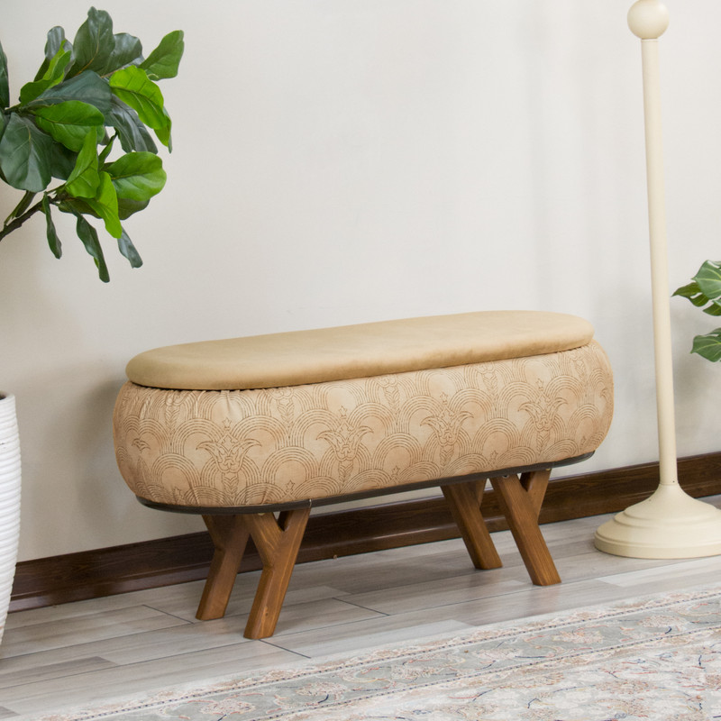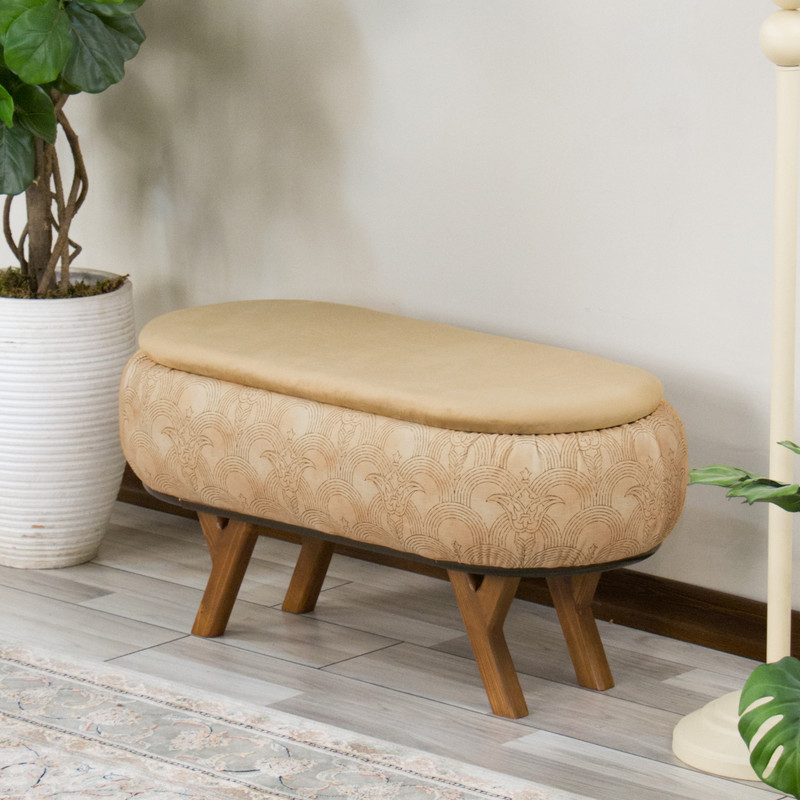 پاف نیمکتی نقش آکام چوب مدل په سایز ۹۰ سانتیمتری، جلوهای از اصالت و هنر ایرانی است که در لباسی نو و مدرن به خانههای امروز قدم گذاشته. نقوش الهامگرفته از معماری باشکوه ایران، با خطوطی ظریف و قوسهایی هماهنگ روی پارچهی مخملی جان گرفتهاند؛ گویی ری از زیباییهای بناها و طاقهای باشکوه گذشته را به فضای خانهی شما میآورند. این پاف با ابعاد جمعوجور خود، انتخابی هوشمندانه برای فضاهای کوچک یا گوشههای خالی خانه است؛ چه کنار مبلهای پذیرایی قرار گیرد و چه در ورودی یا کنار تخت، هم نشیمنی راحت فراهم میکند و هم عنصری هنری در دکوراسیون شما خواهد بود. ویژگی منحصربهفرد آن، فضای مخفی و جادار داخلی است که به کمک در پاف بهراحتی در دسترس قرار میگیرد؛ جایی ایدهآل برای نگهداری شال، روسری، کتاب یا وسایل روزمره. پایههای چوبی اریب نیز علاوه بر استحکام بالا، جلوهای مدرن و سبکبینانه به محصول میبخشند. پاف نیمکتی په، ترکیبی است از ظرافت، کاربرد و الهام از هنر ایرانی که حضورش، گرمی و زیبایی خاصی به خانه میبخشد.