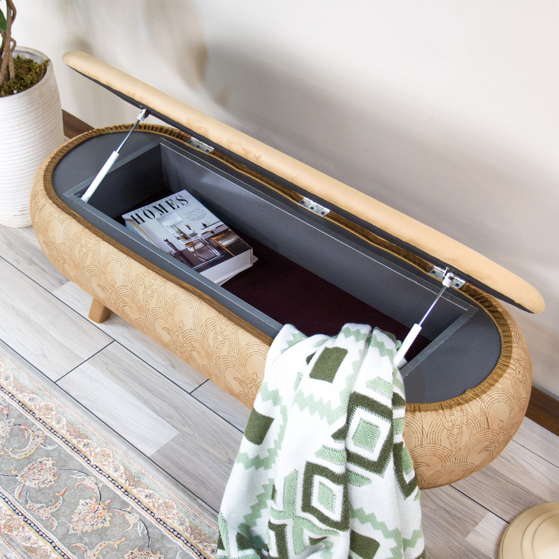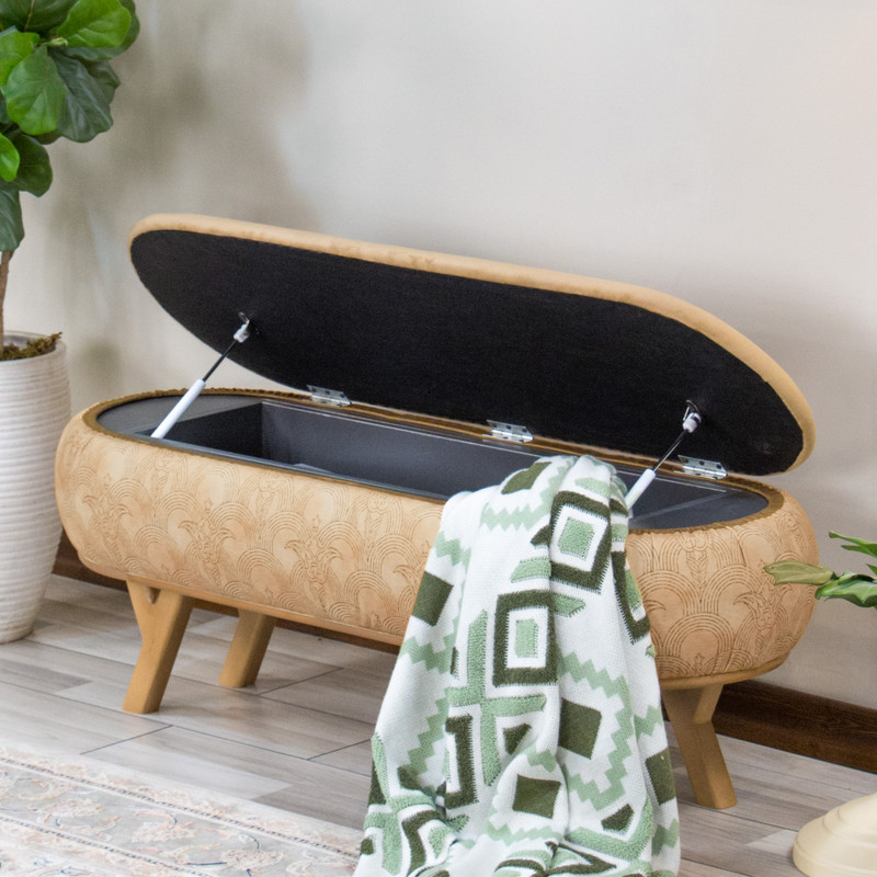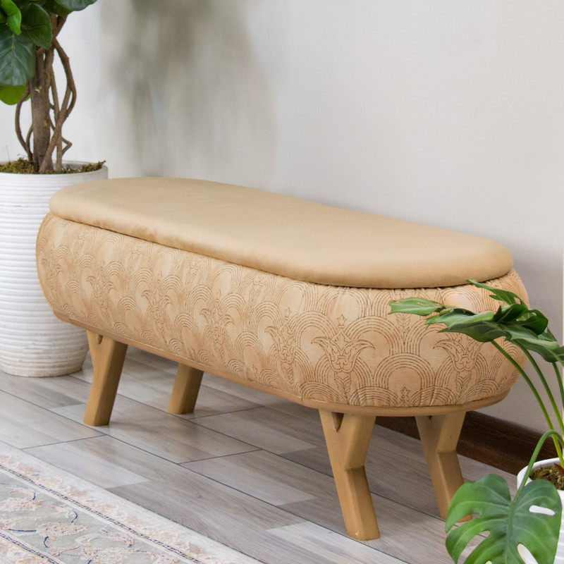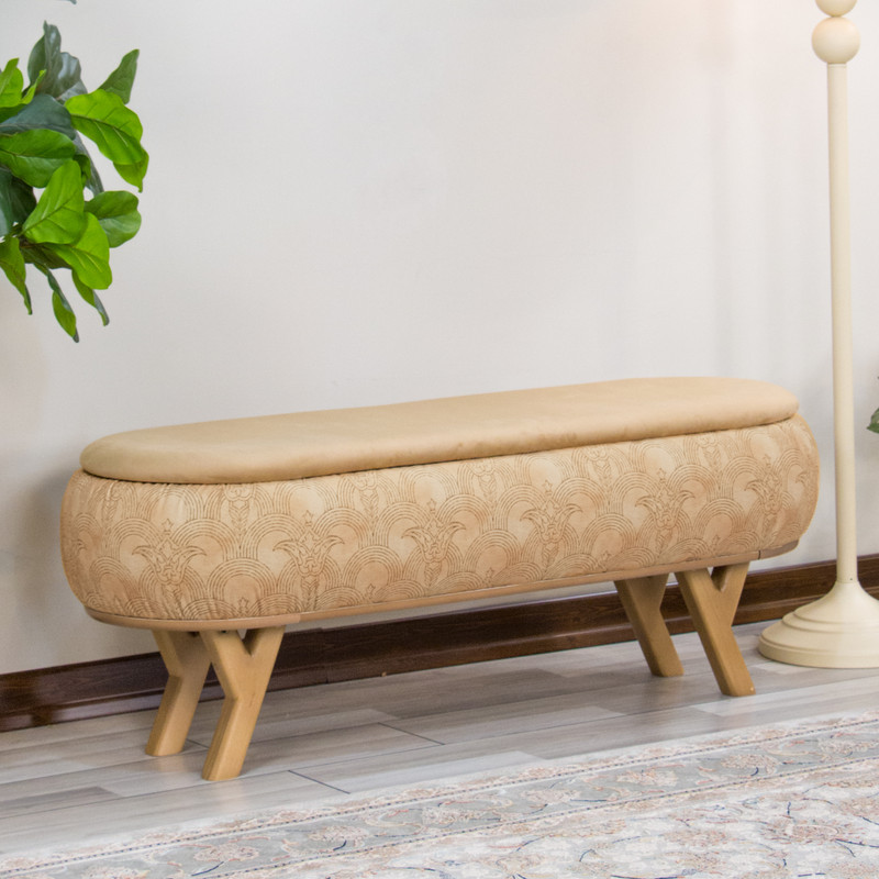 پاف نیمکتی نقش آکام چوب طرح په در سایز ۱۲۰ سانتیمتری، ترکیبی بینظیر از هنر اصیل ایرانی و طراحی مدرن است. پارچهی مخملی با نقوش الهامگرفته از شکوه معماری ایرانی، یادآور ستونها و تزیینات باشکوه بناهای تاریخی است و در عین حال با دکوراسیون مینیمال و مدرن امروز کاملاً هماهنگ میشود. این پاف نیمکتی با طول ۱۲۰ سانتیمتر فضایی جادارتر در اختیار شما قرار میدهد و محفظهی مخفی بزرگ آن انتخابی هوشمندانه برای نظمبخشی به خانه است. از نگهداری کتاب و مجلات گرفته تا قرار دادن شال، پتو و وسایل روزمره، همه در دل این پاف جای میگیرند و محیطی مرتب و دلنشین برایتان خلق میشود. پایههای چوبی اریب علاوه بر استحکام بالا، ظاهری سبک و امروزی به کار میدهند. نشیمن راحت و طراحی ظریف، این پاف را به گزینهای مناسب برای ورودی خانه، کنار تخت یا فضای نشیمن بدل میسازد؛ جایی که هم بهعن نشیمن اضافه کاربرد دارد و هم بهعن قطعهای دکوراتیو، جلوهای هنری به خانهی شما میبخشد.