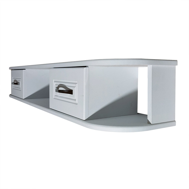 میز تلویزیون دیواری مدل DL45V ساخته شده از جنس ممبران ام دی اف سی ان سی وکیوم با طرح حکاکی روی درب و روکش کره ای دارای وزن سبک و ابعادی استاندارد از نمایشگر 32 تا 63 اینچ را ساپورت میکند. از آنجا که اتصال به دیوار این سبک میز تلویزیون از اهمیت بالایی برخوردار است یک قید م در پشت میز استفاده شده که توسط پیچ رولپلاک به دیوار اتصال میخورد. جنس این میز ممبران درجه یک است، برای خرید جنس های دیگر یا خرید ابعاد متفاوت می توانید دیگر محصولات دلفان دکور بررسی کنید. همه اکسسوری های قابل تعبیه شدن در میز را می توانید در عکس ها مشاهده بفرمائید، اطلاعات دقیق ابعادی در بین تصاویر محصول وجود دارد. با کوچکتر شدن متراژ خانه ها استفاده از فضای منزل از اهمیت بالایی برخوردار می شود و به جای کف خانه بیشتر از دیوارهای عمودی استفاده، این میز دیواری تلویزیون با داشتن دو درب داشبوردی و طبقات و جای کابل مخصوص، وسایل بسیار زیادی در خود جای دهد و همین عمر باعث می شود از ریختوپاش اطراف تلویزیون کم و انضباط خاصی را در محدوده نمایشگر ایجاد شود.