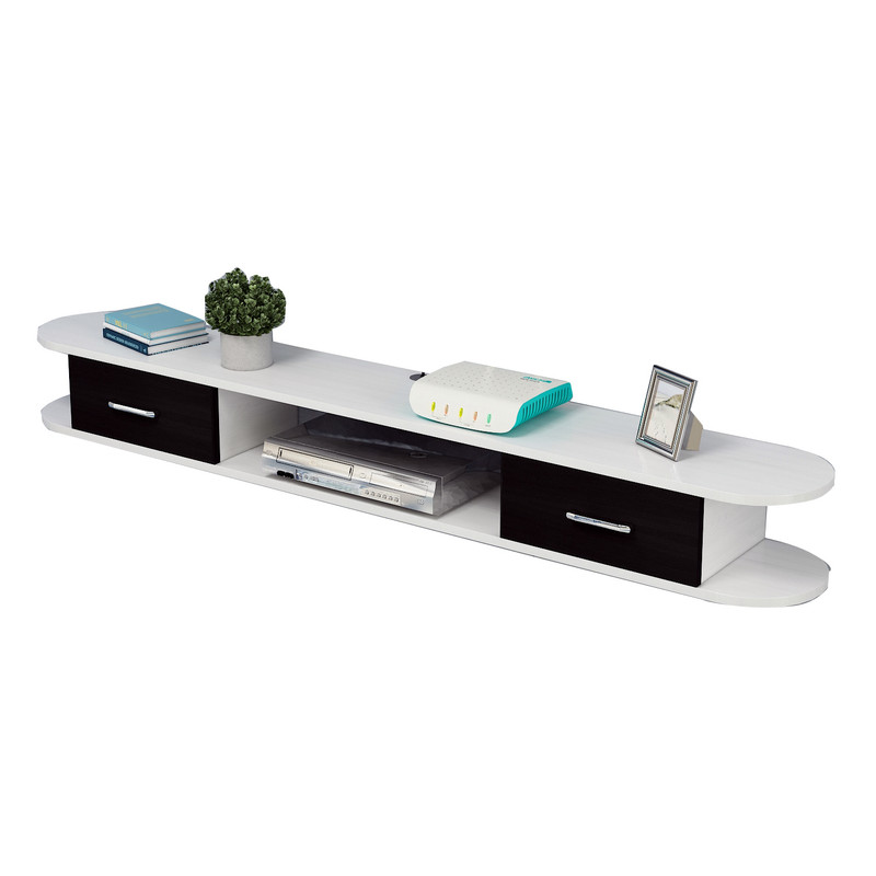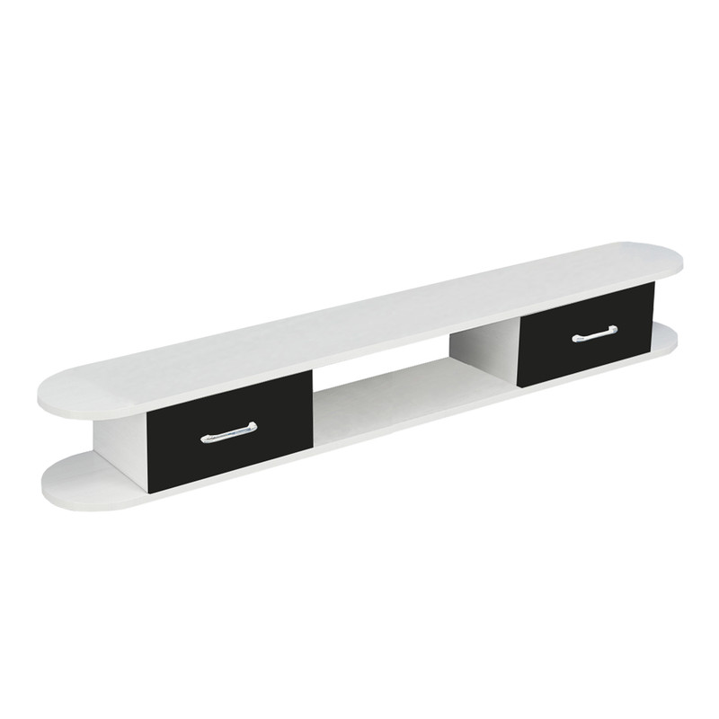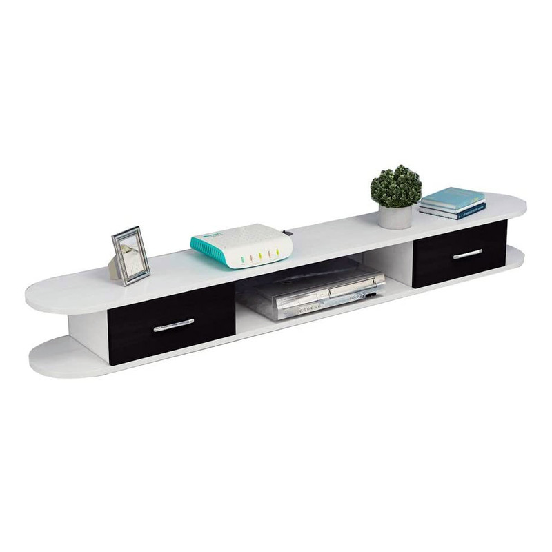 میز تلویزیون دیواری مدل DLF43M ساخته شده از جنس ام دی اف MDF در رنگ سفید با دو درب داشبردی مشکی، وزن سبک و ابعاد استاندارد از نمایشگر 32 تا 72 اینچ را ساپورت میکند. از آنجا که اتصال به دیوار این سبک میز تلویزیون از اهمیت بالایی برخوردار است روش فیتینگ یا قید حمال استفاده شده است با توجه به عکس آخر در واقع شما اول یک قطعه چوب که به همراه میز است را توسط پیچ رولپلاک به دیوار اتصال میزنید سپس میز را روی آن قید سوار میکنید. جنس این میز ام دی اف است، برای خرید جنس لترون (ملامینه) و یا خرید ابعاد متفاوت می توانید دیگر محصولات دلفان دکور بررسی کنید. همه اکسسوری های قابل تعبیه شدن در میز را می توانید در عکس ها مشاهده بفرمائید، اطلاعات دقیق ابعادی در بین تصاویر محصول وجود دارد. میز DLF43M در رنگ سفید و مشکی دقیقا مشابه تصاویر ال میشود. با کوچکتر شدن متراژ خانه ها استفاده از فضای منزل از اهمیت بالایی برخوردار می شود و به جای کف خانه بیشتر از دیوارهای عمودی استفاده، این میز دیواری تلویزیون یا میز ال سی دی یا میز ال ای دی با داشتن دو درب داشبوردی کمدی، وسایل بسیار زیادی در خود جای دهد و همین عمر باعث می شود از ریختوپاش اطراف تلویزیون کم و انضباط خاصی را در محدوده نمایشگر ایجاد شود. اطلاعات دقیق ابعادی در بین تصاویر محصول وجود دارد. لطفا برای انتخاب رنگ مورد نظر حتما سمپل رنگ در تصاویر را بررسی کنید.