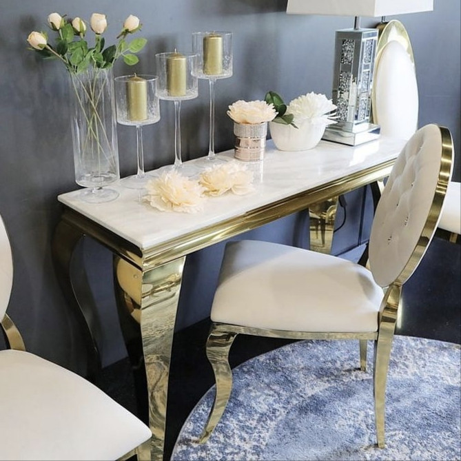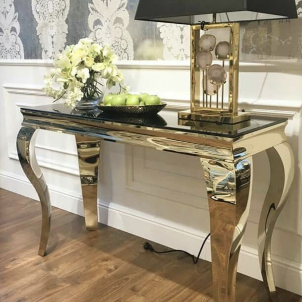 میز کنسول در سالهای اخیر یکی از پر طرفدار ترین محصولات در طراحی های داخلی بوده و هست از این رو انتخاب یک میز کنسول زیبا از اهمیت زیادی برخوردار هستش، با الهام گرفتن از طرح های اروپایی میز کنسول سم آهویی را برای شما طراحی کرده است . این محصول تمام استیل است که در عین سادگي و شيك طراحي منحصر به فردی دارند و بسیار مقاوم است، یک عدد میز کنسول سم آهویی استیل با ابعاد 40 در 100 با رویه شیشه ، با طراحی متفاوت با دیگر محصولات مشابه ،این محصول بصورت پیچ و مهره به هم وصل میشه در طراحی کلی هیچ تغییری ایجاد نشده که متشکل شده از 4 عدد پایه و 1 عدد کلاف و 1 عدد شیشه نصب پایه ها نیاز به مهارت فنی ندارد. در دو رنگ طلایی و نقره ای استیل ارائه میگردد.
