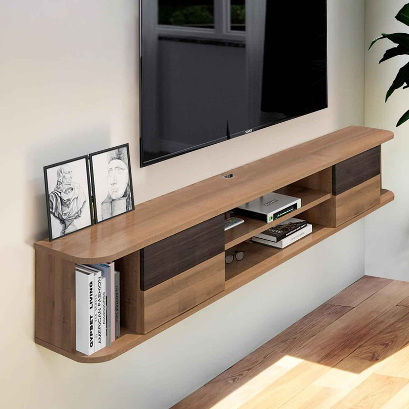 میز تلویزیون دیواری علاوه بر ذخیره سازی و صرفه جویی در فضا با دکوراسیون خانه شما قابل تطبیق تر است.انواع مختلفی از میز تلویزیون دیواری وجود دارد اما انواع جا دادتر آن مانند نمونه بالا که دارای 4 کشو است به شما امکان ذخیره سازی فضای بیشتری میدهد.نصب بسیار راحت بوده و به همراه میز بروشور نصب به همراه یراق مورد نیاز ال میگردد.با خرید میز میز تلویزیون دیواری دیگر نگران کمبود جا و منزل کوچک خود نخواهید بود.لبه های میز به صورت گرد در آمده که این لبه های گرد ظاهر زیبایی به میز شما میبخشد.علاوه بر این این لبه های گرد احتمال یب ناشی از برخورد سر به آن را به حداقل میرساند.اگر کودک کم سنی دارید و نگران برخورد آن با میز و یب رسیدن به آن هستید این میز برای شما ایده آل خواهد بود. در هنگام نصب میتوانید آن را در ارتفاع دلخواه نصب نمایید.نصب میز بسیار راحت بوده و بروشور کامل نصب به همراه متعلقات آن به همراه میز ال میگردد.