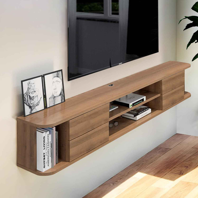 میز تلویزیون دیواری علاوه بر ذخیره سازی و صرفه جویی در فضا با دکوراسیون خانه شما قابل تطبیق تر است.انواع مختلفی از میز تلویزیون دیواری وجود دارد اما انواع جا دادتر آن مانند نمونه بالا که دارای 4 کشو است به شما امکان ذخیره سازی فضای بیشتری میدهد.نصب بسیار راحت بوده و به همراه میز بروشور نصب به همراه یراق مورد نیاز ال میگردد.با خرید میز میز تلویزیون دیواری دیگر نگران کمبود جا و منزل کوچک خود نخواهید بود.لبه های میز به صورت گرد در آمده که این لبه های گرد ظاهر زیبایی به میز شما میبخشد.علاوه بر این این لبه های گرد احتمال یب ناشی از برخورد سر به آن را به حداقل میرساند.اگر کودک کم سنی دارید و نگران برخورد آن با میز و یب رسیدن به آن هستید این میز برای شما ایده آل خواهد بود.