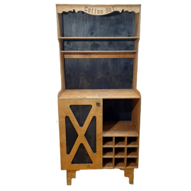 کافه بار جذاب تولید شده در گروه دیاچوب , جنس تماما چوب ( نه ام دی اف ) با ارتفاع 172 سانتیمتر و طول 75 و عمق 40 سانتیمتر دارای 6 آویز فلزی و داری یک درب چوبی مطابق با عکس می باشد این محصول کاملا ضد آب می باشد