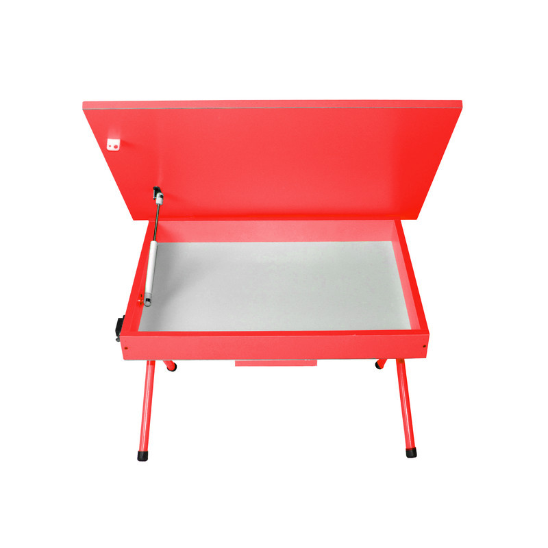 این محصول پایه رنگی می باشد. این میز تحریر باکسدار و باکس آن فضای بزرگی به اندازه 66x46 سانتی متر در عمق 6 سانتی متری در زیر میز برای جایگذاری کتاب و لوازم تحریر و حتی لپ تاپ را دارد. طراحی پایه ی این میز بسیار خاص و مخصوص برند می باشد و سطح کاملا صافی را در 4 ارتفاع ارائه می دهد. میز این محصول تاشو و با قابلیت تنظیم ارتفاع از 33 تا 43 سانتی متر نسبت به سن مصرف کننده می باشد و مناسب نوجوانان و بزرگسالان می باشد. پایه ها از جنس لوله آهنی بسیار مقاوم با تحمل وزن بالای 100 کیلوگرم است. این محصول تماما ایرانی و با بالاترین کیفیت می باشد. ویژگی این محصول کم جا بودن و تاشدن در هنگام عدم نیاز است. موارد استفاده این میز مطالعه، کامپیوتر و لپ تاپ، کار، طراحی و نقاشی، میز اداری و مدرسه می باشد. دیگر ویژگی های این میز سبک و قابل حمل آسان، قابلیت استفاده تمام سنین، قابلیت تنظیم ارتفاع، تحمل وزن بالای پایه، پرکاربرد بودن است.