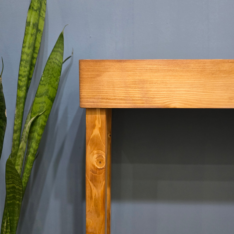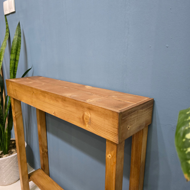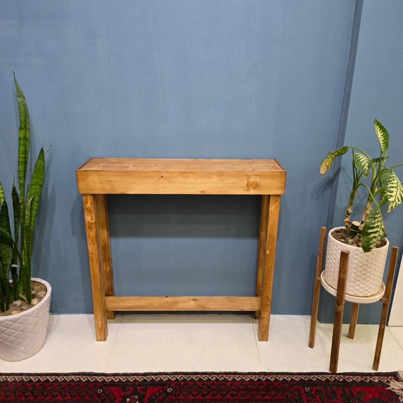 کنسول مارچوبه با کد 2075 از چوب روسی با کیفیت ساخته شده و دارای ابعاد ۷۵ سانتیمتر طول، ۷۵ سانتیمتر ارتفاع و ۲۰ سانتیمتر عرض است. پس از برش و آمادهسازی اولیه، تمام سطح چوب با دقت سنبادهکاری و پرداخت شده تا کاملاً صاف و یکدست باشد. سپس فرآیند رنگآمیزی با رنگ مخصوص چوب انجام شده و در مرحله نهایی، یک لایه کیلر شفاف روی محصول اعمال شده است. این پوشش نهایی نهتنها باعث براق شدن و زیبایی بیشتر محصول میشود، بلکه از نفوذ گرد و غبار و مایعات به بافت چوب جلوگیری کرده و دوام آن را افزایش میدهد. نمونه تصویر محصول به رنگ قهوه ای روشن میباشد. این کنسول همچنین در مدل بیرنگ نیز عرضه میشود که در آن فقط سنبادهکاری و پرداخت سطح انجام شده و هیچگونه رنگ یا کیلری روی آن استفاده نشده است. این مدل برای مشتریانی مناسب است که میخواهند با توجه به سلیقه و دکوراسیون منزل خود، رنگآمیزی نهایی را به دلخواه انجام دهند.