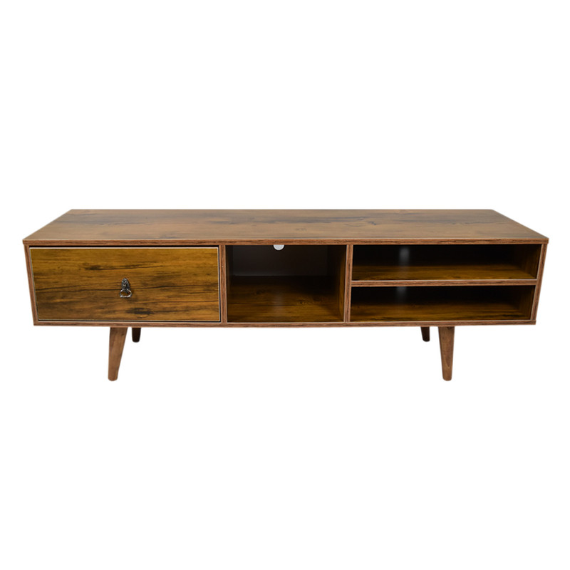 میز تلویزیون مدل «K737» با طول 138 سانتیمتر یک میز نسبتا بزرگ است. این میز از نئوپان ساخته شده است و اما یک روکش پی وی سی به رنگ قهوهای روی آن اضافه شده که هم بدنه را مقاومتر کرده و هم جلوه خاصی به آن بخشیده. پایههای چوبی میز در عین سادگی هماهنگی بسیار خوبی با بدنه دارد و ارتفاع کلی میز را به 45 سانتیمتر میرساند. این میز کشوی دستگیرهدار دارد. یک تکه بودن این میز جابهجایی آن را کمی مشکل کرده اما در عوض استحکام بسیار بالایی دارد و با اطمینان میتوانید هر نوع تلویزیونی را روی آن قرار دهید. میز تلویزیون مدل K737 طراحی کلاسیکی دارد و میتوانید آن را با اکثر مبلمانهای خانگی هماهنگ کنید.