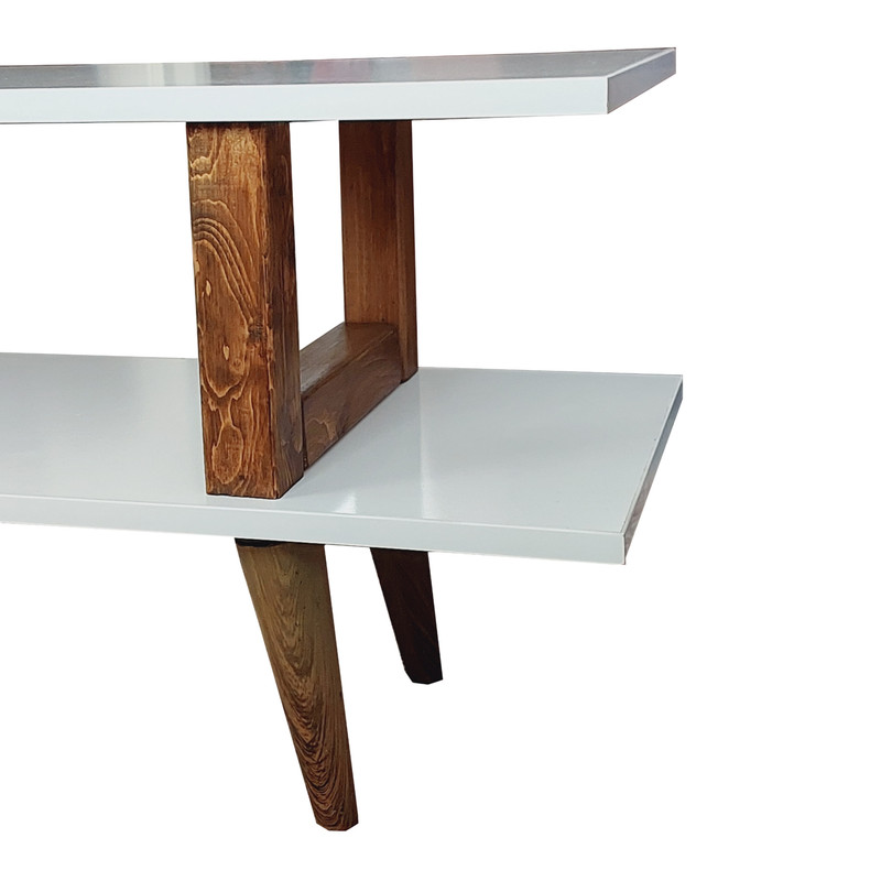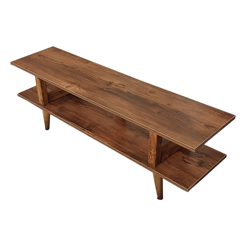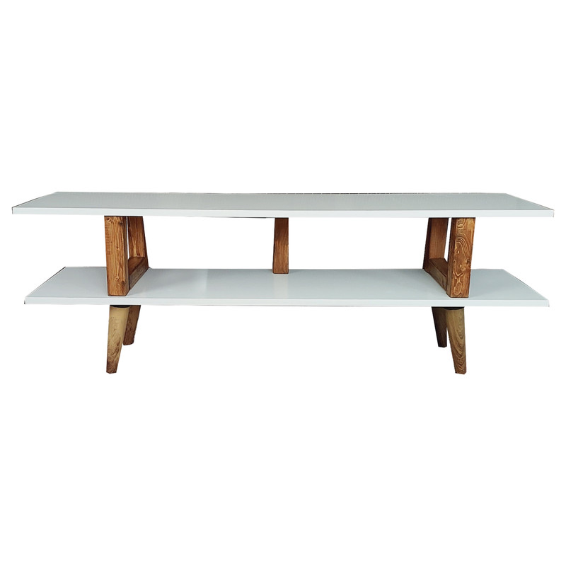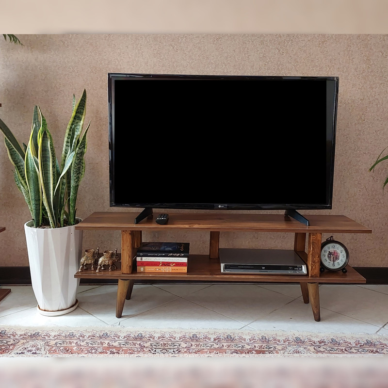 میز تلویزیون یکی از نیازهای هر خانه برای قرار گرفتن تلویزیون و گیرنده بر روی آن می باشد. طراحی زیبا، وزن کم، استفاده از چوب طبیعی و قیمت مناسب از مزایای این میز تلویزیون است. پایه های این میز از جنس پلاستیک با روکش طرح چوب میباشد که به پایین میز پیچ می شود.