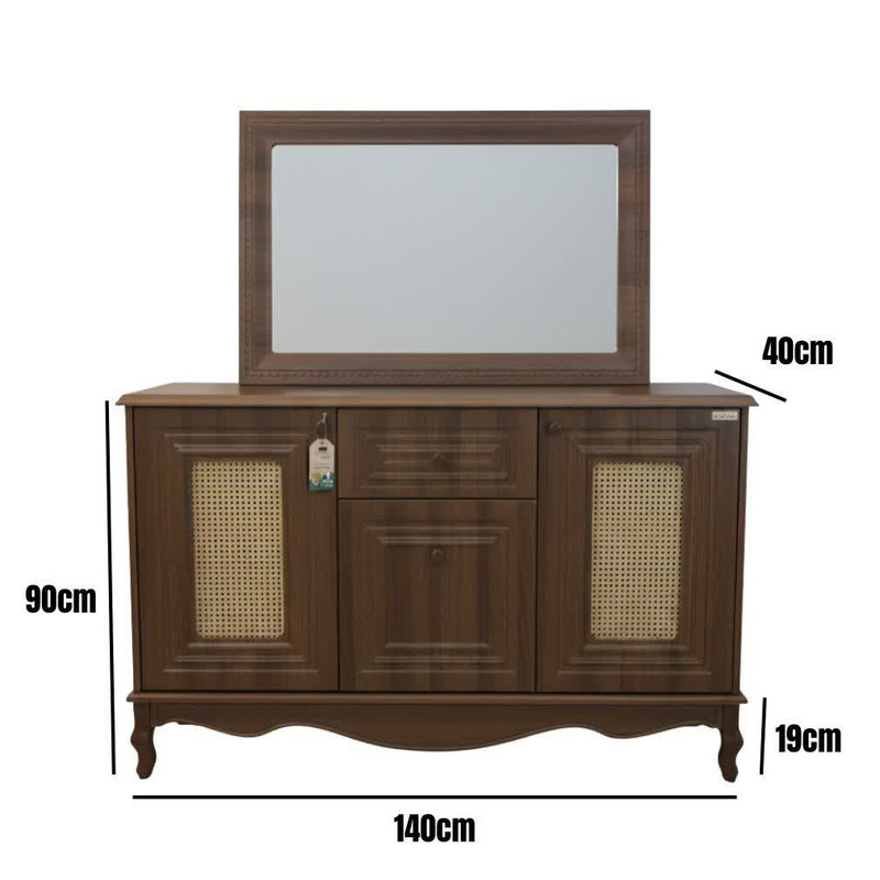 آینه و کنسول چوب مدل حصیری طول 140 سانتیمتر خانمان مدل 300145