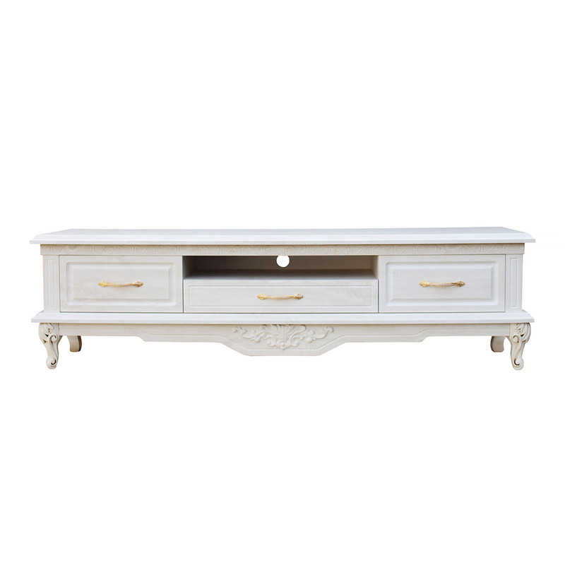 میز تلویزیون مدل NEW-CLASSIC-200cm یکی از انواع میز تلویزیون های سبک کلاسیک است که طول آن دو متر، عرض آن 45 سانتیمتر و ارتفاع آن 50 سانتیمتر است. جنس این میز ام دی اف وکیوم (ام دی اف روکش دار ضد خش) و جنس پایه های آن چوبی است. این میز دارای سه کشوی دستگیره دار و یک محفظه جهت قرار دادن دستگاه های جانبی تلویزیون است و دارای شش رنگ بندی قهوه ای روشن، قهوه ای تیره(سوخته)، سفید، صدفی (کرم روشن)، مشکی و خاکستری است.