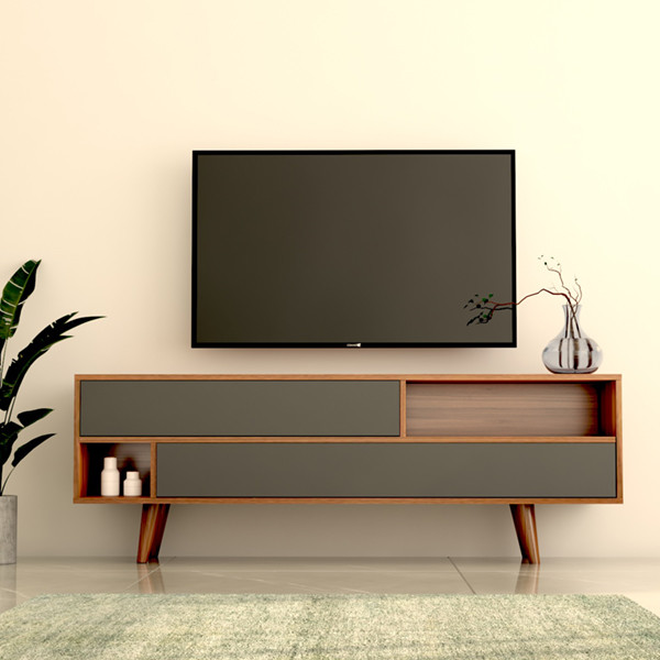 میز میزتلویزیونT.S005 با طراح مینیمال در ابعاد 35x45x150 مناسب برای تلویزویون های تا 50 اینچ می باشد. این میزدارای دو درب مجزا با باقفل مگنتی توکار و دو شلف برای قرار دادن گیرنده دیجیتال و لوازم مشابه میباشد.