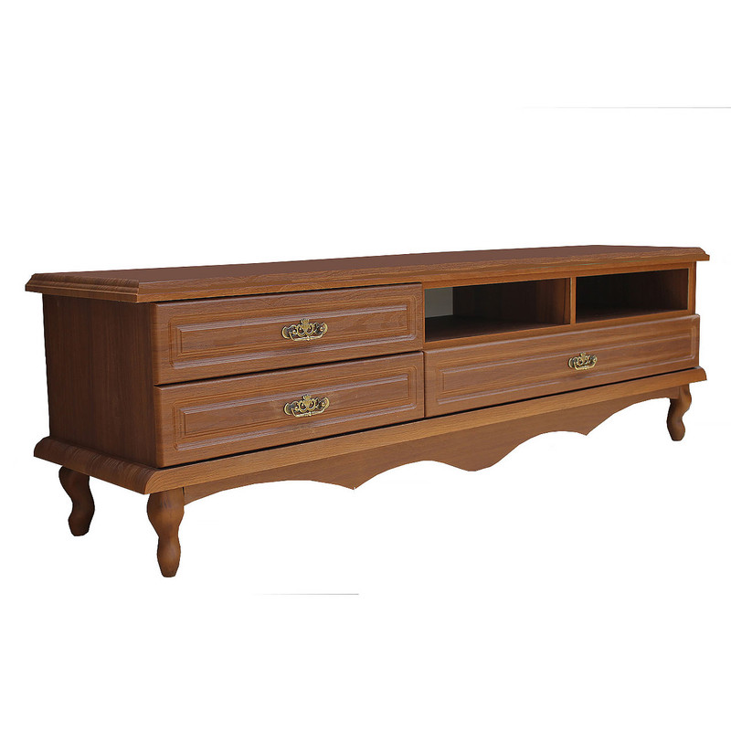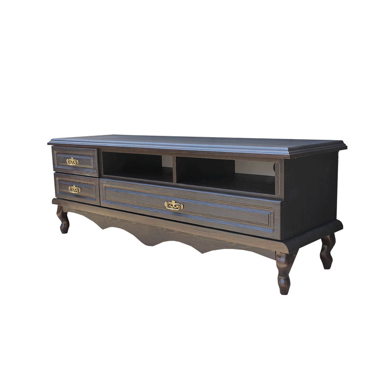میز تلویزیون مدل V-160 NEW یکی از انواع میز تلویزیون های سبک کلاسیک استند است که در سه رنگ بندی قهوه ای روشن، قهوه ای تیره و سفید در دیجی کالا موجود است. طول این میز 160 سانتیمتر، عرض آن 40 سانتیمتر و ارتفاع آن 50 سانتیمتر است. جنس بدنه میز ام دی اف وکیوم(ام دی اف روکش دار ضد خش) و جنس پایه های آن چوبی است. این میز دارای سه کشوی دستگیره دار است که دستگیره های کلاسیک زیبایی بر روی در کشوهای آن نصب شده است و دارای دو محفظه برای قرار دادن دستگاه های جانبی تلویزیون است.