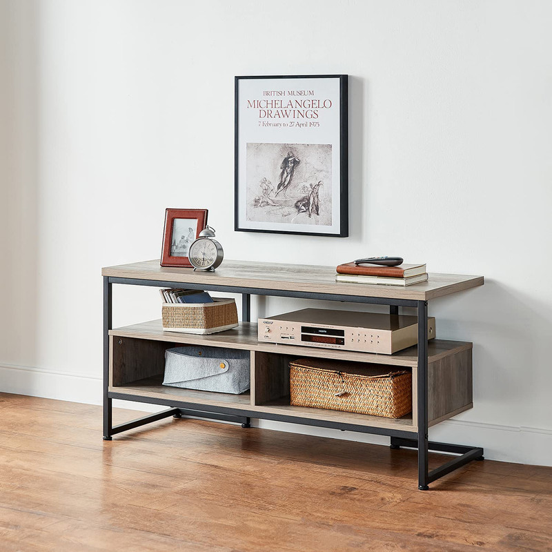 میز تلویزیون چوبین نورا مدل WD-15 با استفاده از صفحه MDF و فریم فلزی، با سه قفسه مجزا می تواند گزینه مناسبی جهت زیبا سازی چیدمان کتاب ها ، قاب عکس و وسایل دکوری در منزل باشد و همینطور به عنوان میز تلویزیون استفاده شود. همچنین پایه فلزی با رنگ استاتیک مشکی مات است. این میز مناسب قرارگیری تلویزیون تا سایز 55 اینچ است.