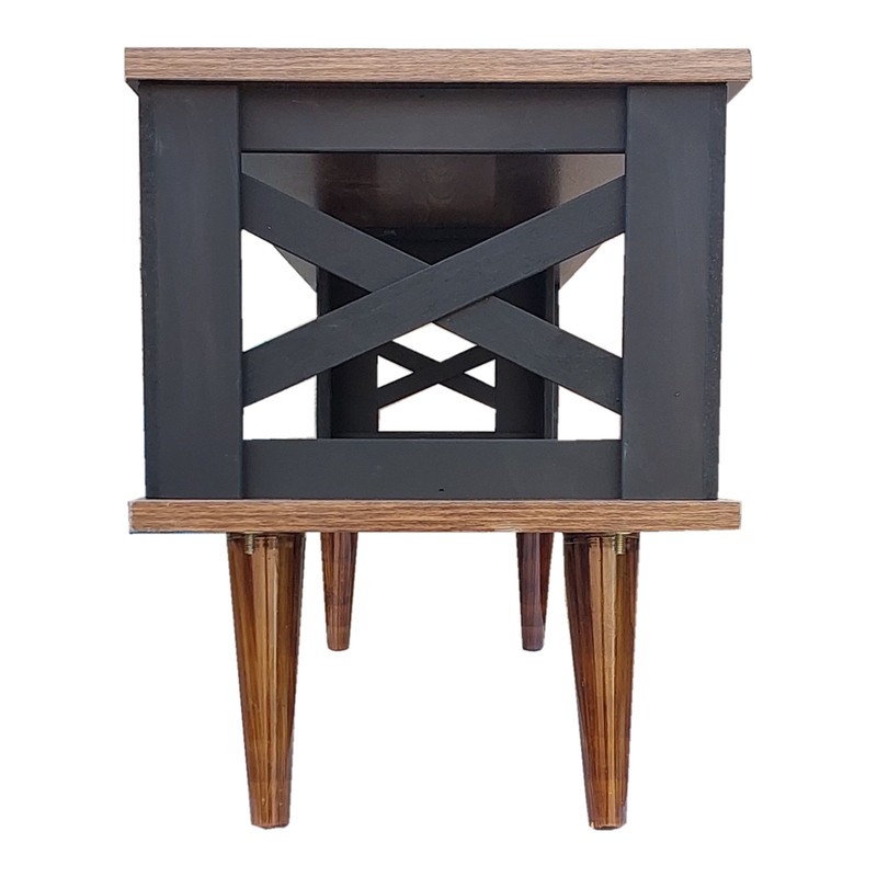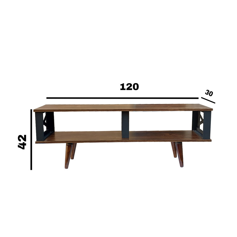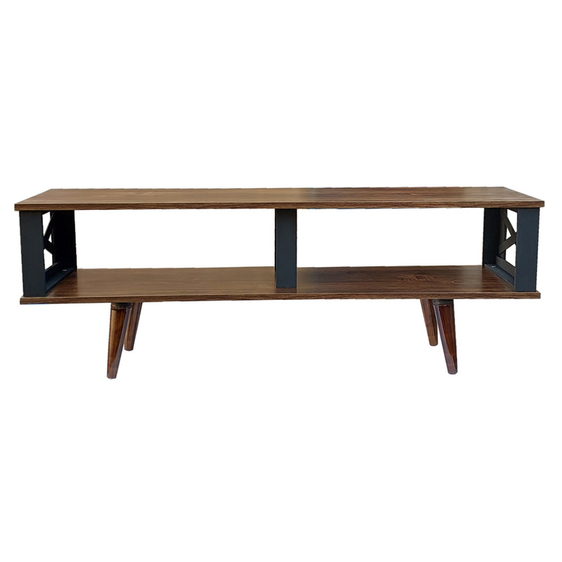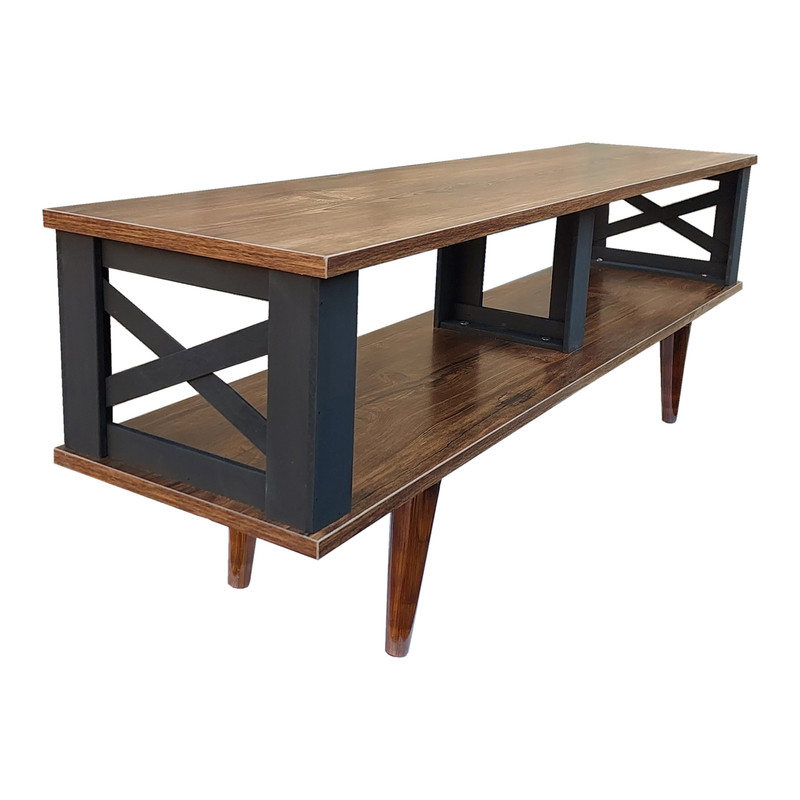 میز تلویزیون یکی از نیازهای هر خانه برای قرار گرفتن تلویزیون و وسایل مرتبط با آن بر روی آن می باشد. با توجه به فضای بزرگ طبقات زیرین این میز، از آن می توان برای قرار دادن لوازم دکوری استفاده کرد. طبقات میز از جنس ملامینه با نوار پی وی سی است. پایه های این میز از ام دی اف خام هشت میلیمتری ساخته شده است که با رنگ اکریلیک مشکی رنگ آمیزی شده است. این میز به راحتی بوسیله دوازده پیچ مونتاژ می شود. با مقداری باز و بسته کردن پیچ پایه های مخروطی، میتوانید در صورت نیاز میز را تراز کنید. لینک آموزش مونتاژ این میز در بسته بندی قرار دارد.