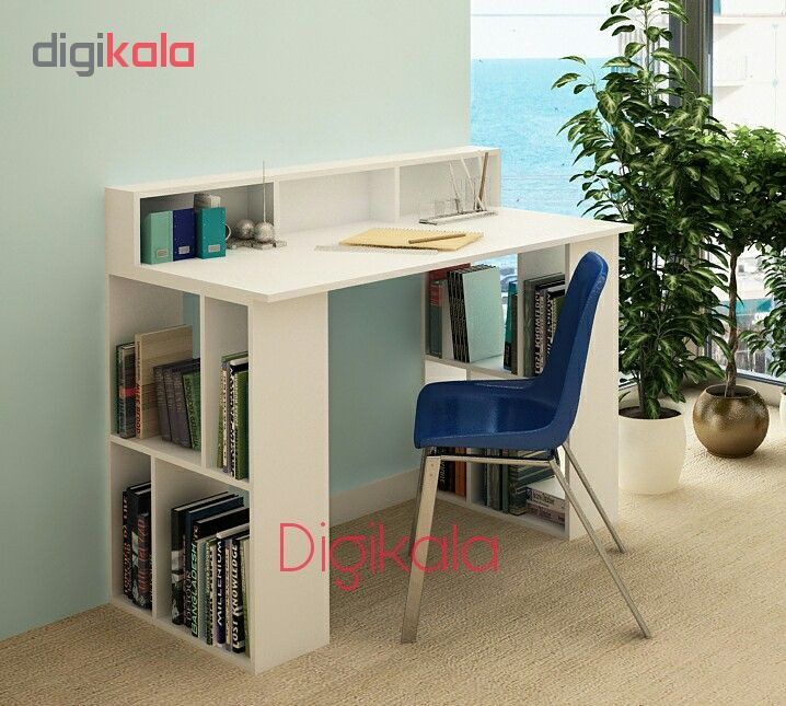 میز تحریرهای دو منظوره گروه تولیدی صنایع دکورا با طراحی خوب خودشون دو نیاز شما رو همزمان در یک محصول برآورده کردند. در واقع با تهیه این محصول هم صاحب میزتحریر میشید و هم کتابخانه. نکته ای که باید بهش توجه کنید این هست که در تمام تولیدات این شرکت از ورق ام دی اف مرغوب استفاده شده که این عامل خودش باعث ی بالا و کیفیت خوب محصولاتشون شده. لبه کارهاشون با pvc با ضخامت دو میلی متر کاور شده که این خودش باعث زیبایی و مقاومت بیشتر اجزاء کار در برابر ضربه شده. در طراحی و ساخت این محصول به جنبه های زیبایی شناختی و کاربردی توجه زیادی شده. این میز تحریر در مدلهای کشو دار،طاقچه تک،طاقچه دوبل هم تولید شده که شما بر اساس نیازتون میتونین بهترین مدل رو انتخاب کنین. میز تحریر مدل M200 از سری میزهای دومنظوره شرکت صنایع دکورا میباشد. این میز دارای صفحه ای از جنس ام دی اف مرغوب ضدخش بوده که با اندازه 120×60 محیط مناسبی برای انجام کارهای مختلف رو براتون ایجاد کرده است. بدنه های این میز با عرض 20 سانت فضای مناسب و امنی رو برای گذاشتن کتاب و وسایل براتون ایجاد کرده. طراحی بدنه ها به شکلی انجام گرفته که از هر دو سمت قابل دسترسی هستند و حتی اگه این میز رو در کنج دیوار هم قرار بدین باز هم از داخل دسترسی به کتابخانه ها خواهید داشت. در نهایت طاقچه این محصول که بر روی سطح میز نصب شده این امکان رو به شما میده که خیلی بهتر وسایل روی میزتون رو سر و سامان بدین و از شلوغی بیش از حد صفحه میز جلوگیری میکنه. این طاقچه با ارتفاع 20 سانت و عمق 12 سانت یک فضای بسیار کاربردی برای قرار دادن وسایل ریز و درشت دم دستی خواهد بود. جنس بدنه این طاقچه ها همانند بقیه قسمتهای این محصول از ام دی اف درجه یک بوده و دیواره پشتی طاقچه با فیبر سفید رنگ با ضخامت 3 میلی متر پوشانده شده.