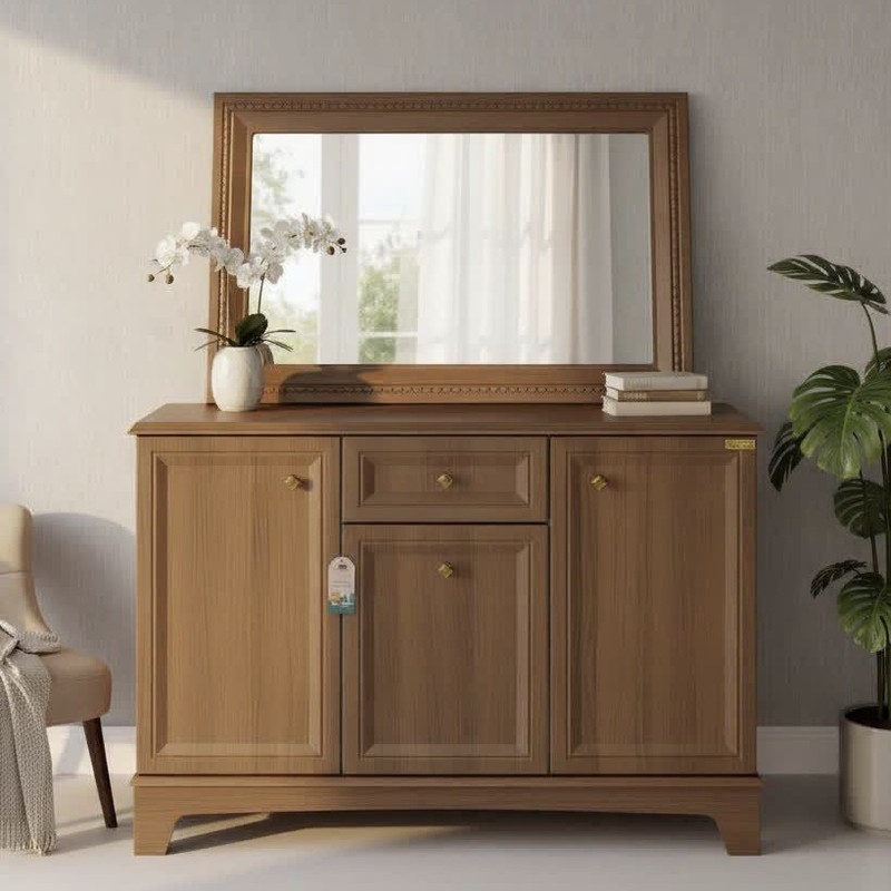 آینه و کنسول مدل نئوکلاسیک، یک انتخاب ایدهآل برای زیبایی و کارایی در هر فضای داخلی است. این محصول با طراحی شیک و منحصر به فرد، به راحتی میتواند نقطه کانونی اتاق شما شود. جنس MDF با کیفیت آن، دوام و ی طولانی را تضمین میکند، در حالی که رنگهای فندقی و سفید به آن جذابیت خاصی میبخشند. با سه درب و یک کشو، این کنسول فضای کافی برای ذخیرهسازی و نمایش دکوریهای شما را فراهم میکند. با این آینه و کنسول، زیبایی و نظم را به دکوراسیون خود هدیه دهید!