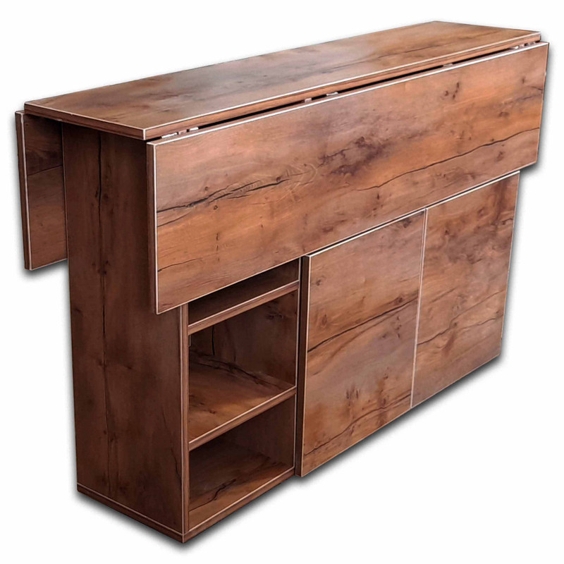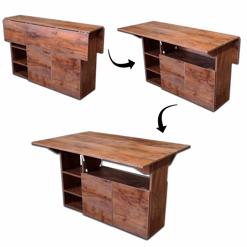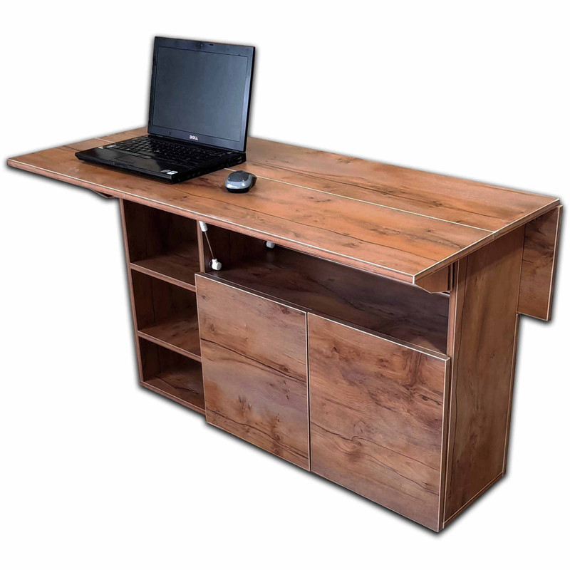 با اضافه شدن یک میز تحریر تاشو به خانه، علاوه بر اینکه شما می توانید از مزایای وجود یک میز میز تحریر لذت ببرید، با جمع کردن کامل آن در مواقعی که به آن نیاز ندارید می توانید فضای بصری بازتری را خلق کنید .این یک میز تحریر تاشو مجهز به صفحات تاشونده بوده که طراحی آن مدرن بوده و عملا در هنگام باز شدن میتواند از آن علاوه بر یک میز تحریر به عن میز ناهارخوری 4 نفره، میز طراحی و میز کامپیوتر ، میز خیاطی و غیره نیز استفاده کنید.این میز مجهز به 2 عدد جک 120 نیوتنی آرام باز شو و قدرتمند و همچنین پایه های تاشو برای قفل کردن صفحات باز شونده برای اطمینان و ایمنی و تحمل وزن بیشتر است که باز و بسته شدن و نگهداری صفحات دو طرف میز را به عهده دارند. دارای فضای کابینتی زیاد و جادار بوده که قادر به نگهداری کتاب و ظروف و وسایل بسیاریست.همچنین در زیر آن چرخهایی تعبیه شده که جابجایی آن را آسان مینماید.