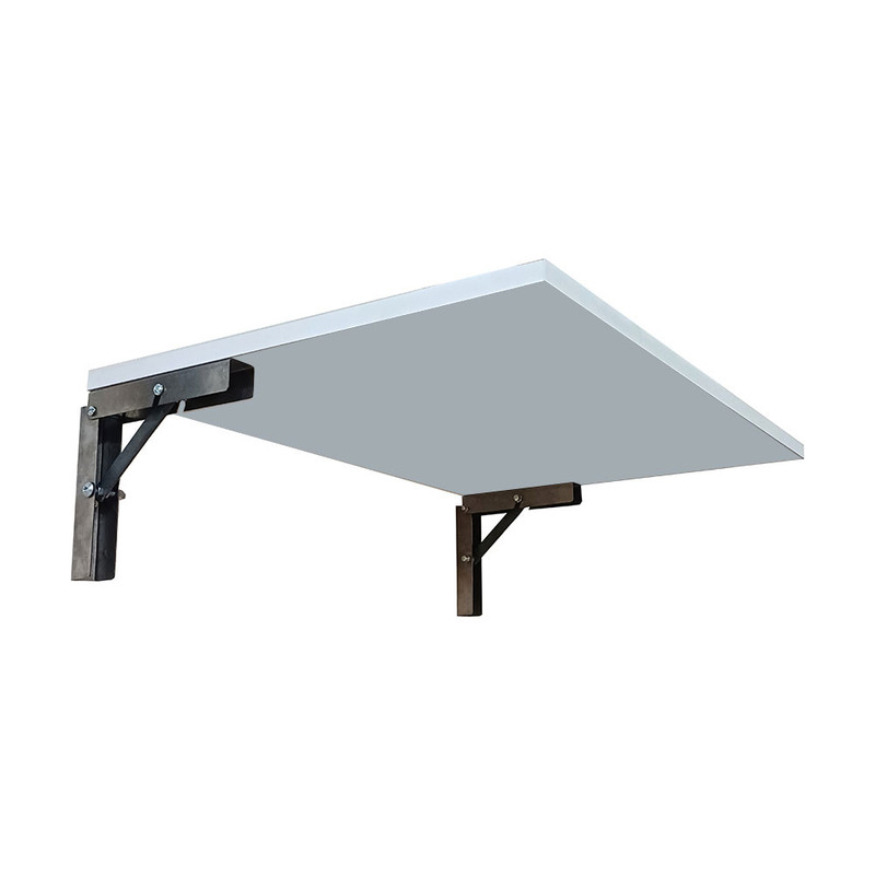 میز تحریر تاشو مهسان از ام دی اف درجه یک در ابعاد 60 در 45 سانتی متر با روکش مقاوم در برابر خط و خش ساخته شده و در چهار طرف صفحه میز ر پی وی سی بکار برده شده است.لولای بکار رفته در این میز از جنس فلز بسیار مقاوم بوده که قابلیت تحمل وزنی معادل 30 کیلو گرم را دارد.این میز به وسیله 4 پیچ به دیوار نصب میشود و با حرکت دادن اهرم ها به سمت بالا به حات 90 درجه ثابت میماند.برای تا کردن میز هم کافیست صفحه میز را کمی به سمت بالا کشیده تا اهرم ها آزاد شده و میز به حالت تا شده تغییر زاویه دهد.از این میز میتوان به عن میز تحریر یا میز لبتاپ و همچنین تخته برد استفاده نمود.