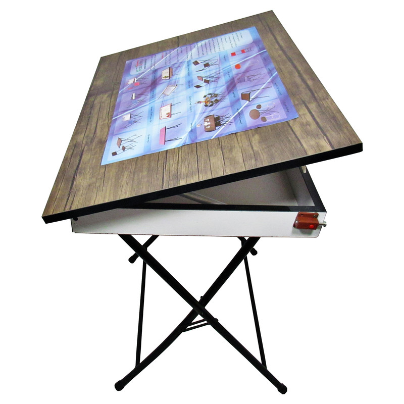 این میز تحریر باکسدار می باشد و مخصوص استفاده با صندلی می باشد اما در این صفحه بدون صندلی و تکی به فروش می رسد. فضای بزرگ 57 در 40 در عمق 6 سانتیمتری زیر میز برای جایگذاری کتاب و لوازم تحریر و حتی لپ تاپ را دارد. سطح رویه ی این میز کاملا صاف و بدون شیب می باشد و مانند سایر میزهای موجود دارای شیب نمی باشد و این طراحی مختص به میزهای برند می باشد و با تمام میزهای موجود متفاوت است. صفحه روی باکس با جک پر قدرت باز می ماند و نیاز به نگهداری با دست ندارد. میز و صندلی این محصول تاشو و با قابلیت تنظیم ارتفاع از 70 تا 76 سانتیمتر نسبت به سن مصرف کننده می باشد و قابلیت استفاده تمام سنین از 4 سال تا بزرگسال را دارد. مزیت این میز نسبت به سایر محصولات مشابه این است که باکس این میز 6 سانتی است ولی سایر محصولات باکس 4 سانتی دارند. باکس و ر لبه های پی وی سی این میز همرنگ طرح صفحه و سفارشی سازی شده است و به اتاق شما جلوه ی زیبا و خاصی می دهد. صفحه روی این میز ضد خش و ساییدگی می باشد. پایه ها از جنس لوله آهنی بسیار مقاوم با تحمل وزن بالاست و تا 100 کیلوگرم تحمل وزن را دارد. این محصول تماما ایرانی و با بالاترین کیفیت می باشد. ویژگی این محصول کم جا بودن و تاشدن در هنگام عدم نیاز است و شما همانند میزهای مونتاژ شونده نیازی به باز و بست هیچ قطعه ای ندارید و در کمتر از 5 ثانیه میز باز یا جمع می شود. موارد استفاده این میز مطالعه، کامپیوتر و لپ تاپ، کار، خیاطی، کار آشپزخانه، طراحی و نقاشی، میز مدرسه، غذاخوری یک نفره می باشد. دیگر ویژگی های این میز سبک و قابل حمل آسان، قابلیت استفاده تمام سنین می باشد.