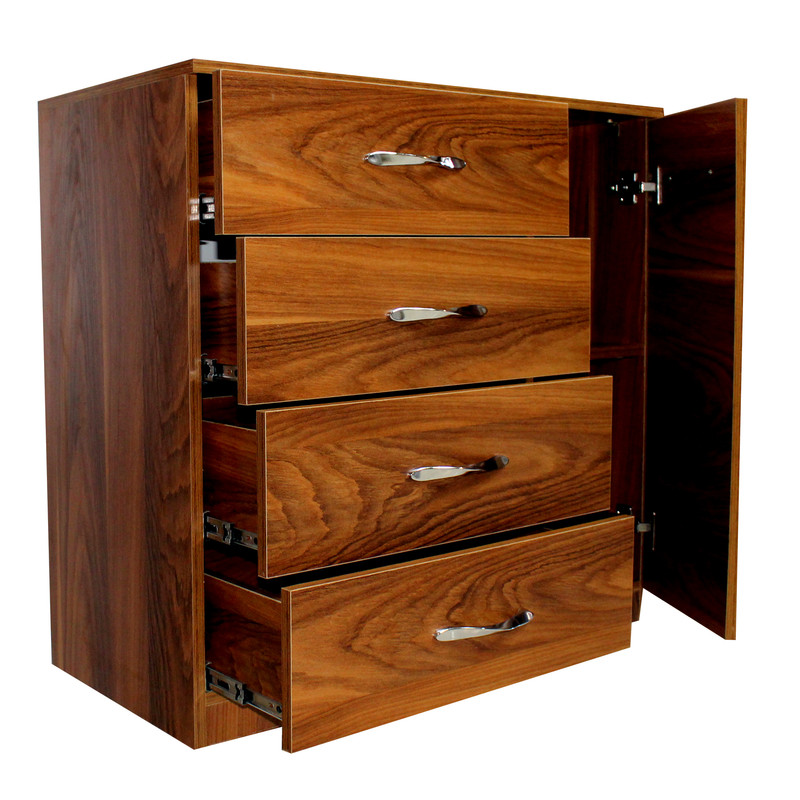 میز دراور مدل چهار کشو و کمد دار کد IKE445 دارای چهار عدد کشو با ریل ساچمه ای درجه یک و یک عدد کمد با لولای آرام بند با کیفیت و جنس روکش از ملامینه ضد خش و دارای سه رنگ آنتیک طلایی ( قهوه ای ) ، گردویی ( قهوه ای روشن ) و سفید زیبا و شکیل میباشد .