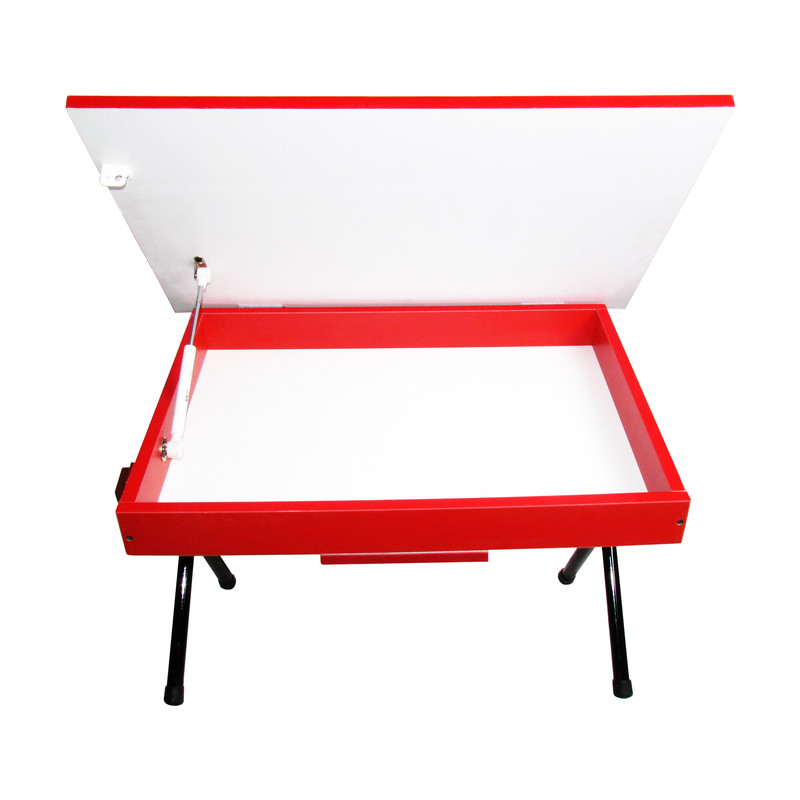این میز تحریر پایه کوتاه و رو زمینی می باشد.این میز باکسدار می باشد و فضای بزرگ 6 سانتی زیر میز برای جانمایی کتاب و لوازم تحریر و حتی لپ تاپ را دارد.صفحه روی باکس با جک پر قدرت باز می ماند و نیاز به نگهداری با دست را ندارد. صفحه روی این میز از جنس ملامینه و ضد خش و ساییدگی می باشد.این محصول تاشو و با قابلیت تنظیم ارتفاع از 35 الی 45 سانتی متر نسبت به نوع مصرف می باشد و پایه از جنس لوله آهنی بسیار مقاوم با تحمل وزن بالاست. این محصول تماما ایرانی و با بالاترین کیفیت می باشد.ویژگی این محصول کم جا بودن و تاشدن در هنگام عدم نیاز است.موارد استفاده این میز، مطالعه، کامپیوتر و لپ تاپ، کار، خیاطی، کار آشپزخانه، طراحی و نقاشی، میز مدرسه، غذاخوری یک نفره می باشد. دیگر ویژگی های این میز سبک و قابل حمل آسان، قابلیت استفاده تمام سنین، قابلیت تنظیم ارتفاع، تحمل وزن بالای پایه و پرکاربرد بودن است.