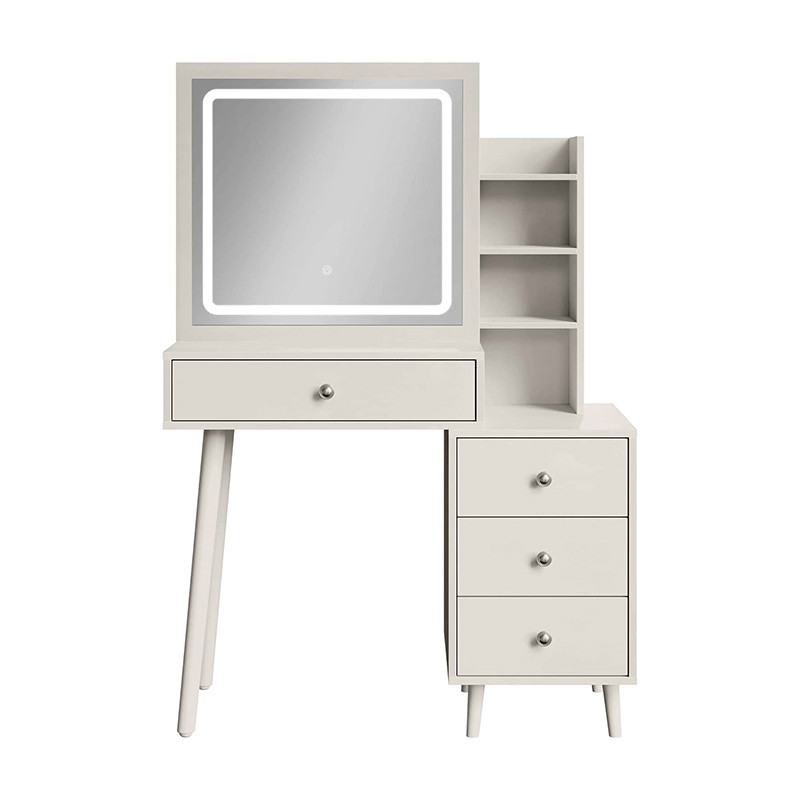 میز آرایش اسمردیس مدل U۱۰۸ با ظاهری ساده و زیبا، مناسب دکوراسیون منزل یا اداری با طراحی مدرن است. میز آرایش اسمردیس مدل U۱۰۸ دارای پاف، آینه، کشو و قفسات متعدد می باشد.