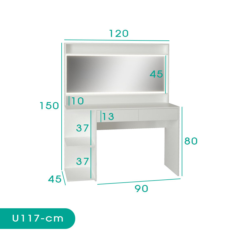 میز آرایش اسمردیس مدل U۱۱۷ با ظاهری ساده و زیبا، مناسب دکوراسیون منزل یا اداری با طراحی مدرن است. میز آرایش اسمردیس مدل U۱۱۷ دارای آینه، کشو و قفسه می باشد.