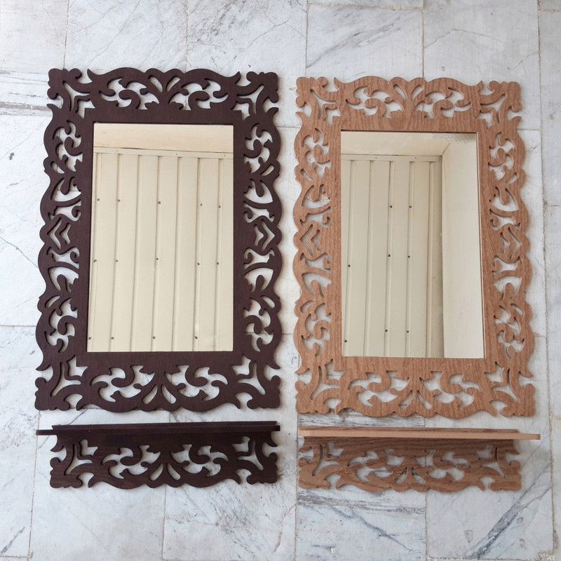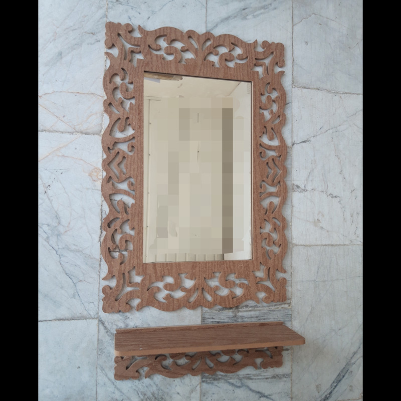 ست آینه و طاقچه پی وی سی خونه خاص که در تصویر مشاهده می کنید در مدل مستطیلی با مشبک های طرح بسیار زیبا تولید و به بازار عرضه گردیده است. بدنه ی PVC این آینه دکوری دارای خاصیت ضد آب و استحکام بسیار بالایی می باشد و از این رو شما میتوانید بدون نگرانی از کاهش کیفیت محصول از آن در محیط های مرطوب و آرایشگاه ها نیز استفاده نمائید. این ست متشکل از آینه مستطیلی و طاقچه کوچک دیواری است که با مشبک های بسیار زیبا با طرح تزئین گردیده است و به شما این امکان را میدهد تا بتوانید از آن علاوه بر کاربرد متداول در محیط های لوکس جهت تزئین دکوراسیون نیز استفاده نمائید. همچنین طاقچه دیواری همراه با آیینه به شما در نگهداری اع لوازم آرایشی، لوازم دکوری، لوازم شخصی بهداشتی و … کمک میکند. این آینه در رنگ های قهوه ای، نسکافه ای و طلایی هم تولید می شود که جنس آن mdf بوده، قابل شستشو نمی باشد ولی با توجه به رنگ دکور شما می تواند آینه ای زیبا و در خور توجه باشد. این محصول بصورت تک جعبه در کارتن خونه خاص تولید و ال می شود.
