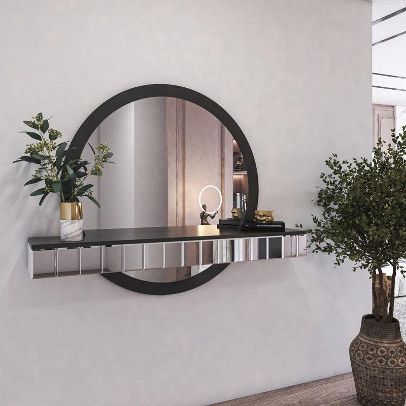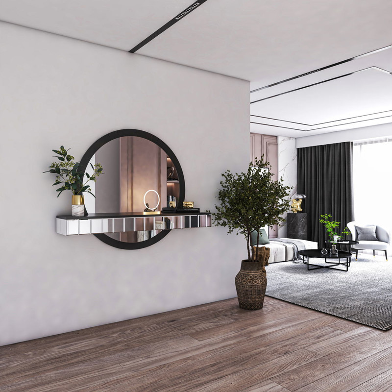 خرید آینه کنسول مدرن به دلیل اینکه امروزه فضای خانه ها بسیار محدود شده و امکان استفاده از محصولات کلاسیک و بزرگ میسر نمی باشد بسیار باب شده و بسیاری از طراحان دکوراسیون داخلی و بان به دنبال خرید آن ها می باشند. استفاده بهینه از فضا همراه با طراحی چشم ز از جمله مهم ترین دلایلی است که سبب می شود اف نسبت به خرید آینه کنسول مدرن اقدام نمایند. در این بین آینه کنسول مدرن استلا ترکیب زیبایی از چوب و آینه برای نصب در ورودی یا سالن نشیمن خانه است. درخشش قطعات آینه ای تراشدار در فضای پرنور سالن نشیمن ، چشم هر بیننده ای را به خود خیره می کند. ابعاد بزرگ آینه کنسول استلا شما را از وجود یک آینه قدی بی نیاز می کند و حضور این محصول با ابعاد بزرگ ، به افزایش نور فضای دکور و انعکاس انرژی مثبت در اتاق نشیمن کمک می کند. استلا دارای یک کنسول دیواری با 19 قطعه آینه مستطیلی تراش دار بوده که درخشش بی نظیری دارد. این کنسول برای قرار دادن اع اکسسوری مانند بانکه های دکوراتیو ، مجسمه ، قاب عکس و گلدان مناسب است. قطر دایره این آینه کنسول ، 120 سانتی متر بوده و دارای فریم چوبی ام دی اف بوده که براحتی روی دیوار نصب می شود. ابعاد کنسول این محصول 150 در 15 با عمق 20 سانتی متر می باشد.