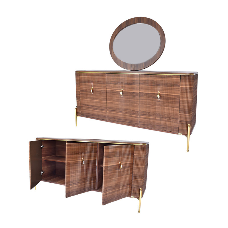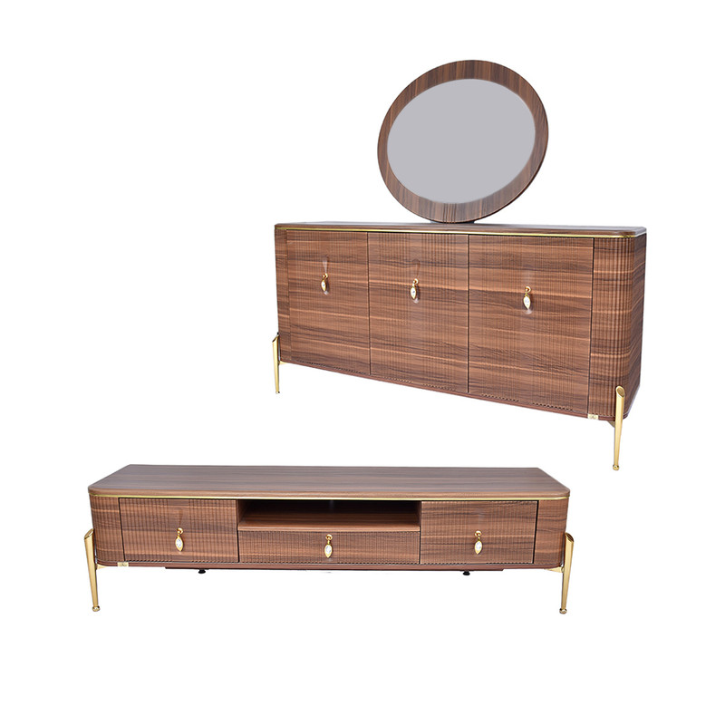 میز تلویزیون و اینه کنسول مدل 219 تمام mdf بایه های فلزی و روکش وکیوم و لولای ارام بند .