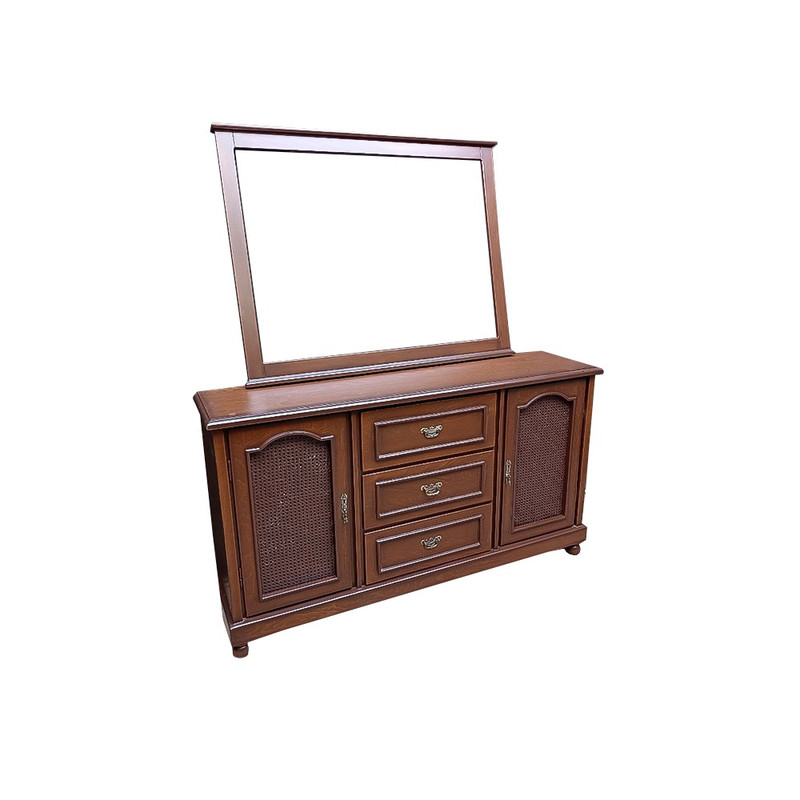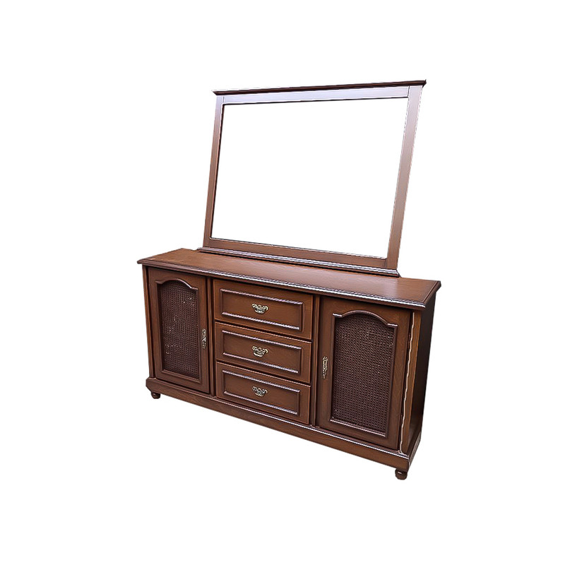 آیینه و کنسول حصیری سه درب با آیینه یکی از شیک ترین آیینه کنسول های مجموعه محسوب میشود و جزو بهترین و خاص ترین های آیینه کنسول محسوب می شود یکی از بارز ترین مشخصات این آیینه کنسول تمام چوب بودن کار است که فقط دو قسمت از آن چوب نمی باشد که ام دی افی است که بر روی آن روکش طبیعی چوب راش آمده است بهترین چوب راش برای تولید این آیینه کنسول استفاده شده است