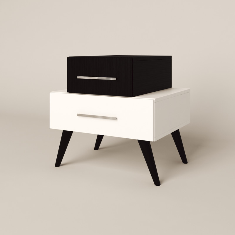 میز پاتختی .بسیار کاربردی و جادار.وزن متناسب با ابعاد.دو کشو بازشو با ریل های سه تکه.دارای رنگ های متنوع.ال در بسته بندی با برند و لوگو .