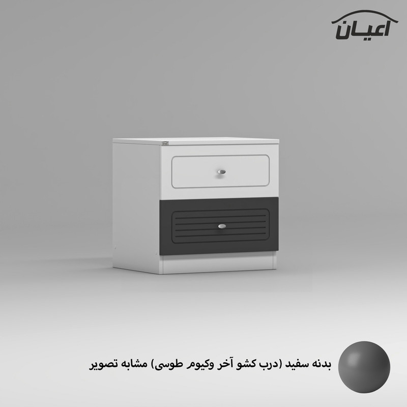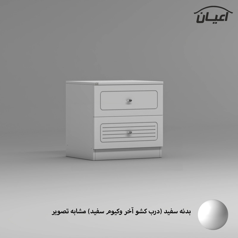 پاتختی ، جنس درب کشوها : مغزی ام دی اف با روکش وکیوم است ، جنس بدنه کالا مغزی نئوپان با روکش ملامینه ، دارای دو کشو با بازشوی ریل سه تکه ساچمه ای ، ال به صورت مونتاژ شده است ، در نظر داشته باشید دستگیره های محصول به صورت گوشواره ای استیل است و برای حفظ سلامت کالا و بسته بندی این دستگیره ها از داخل بسته می شود لطفا پس از بازکردن کار با استفاده از پیچ گوشتی جهت آن را تغییر دهید.این کالا را فقط با برند و لوگو تهیه کنید ، این کالا در رنگ بندی (سفید، طوسی ، مشکی ، قهوه ای روشن ، قهوه ای(گردویی) ، قهوه ای تیره(ونگه) ، سبز ، آبی و صورتی) تولید و عرضه می شود. بدنه ی کالا در تمامی رنگ ها سفید می باشد، لطفا توجه فرمایید که همواره چند درجه اختلاف رنگ بین تصاویر بارگذاری شده و کالای ساخته شده وجود دارد.