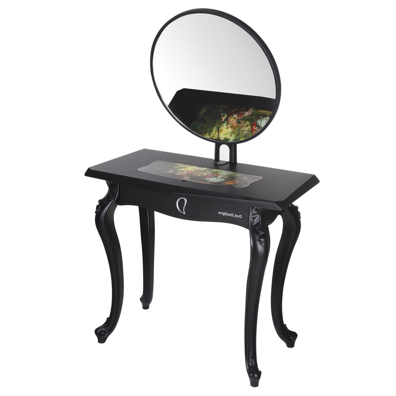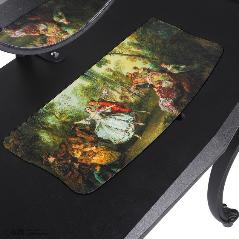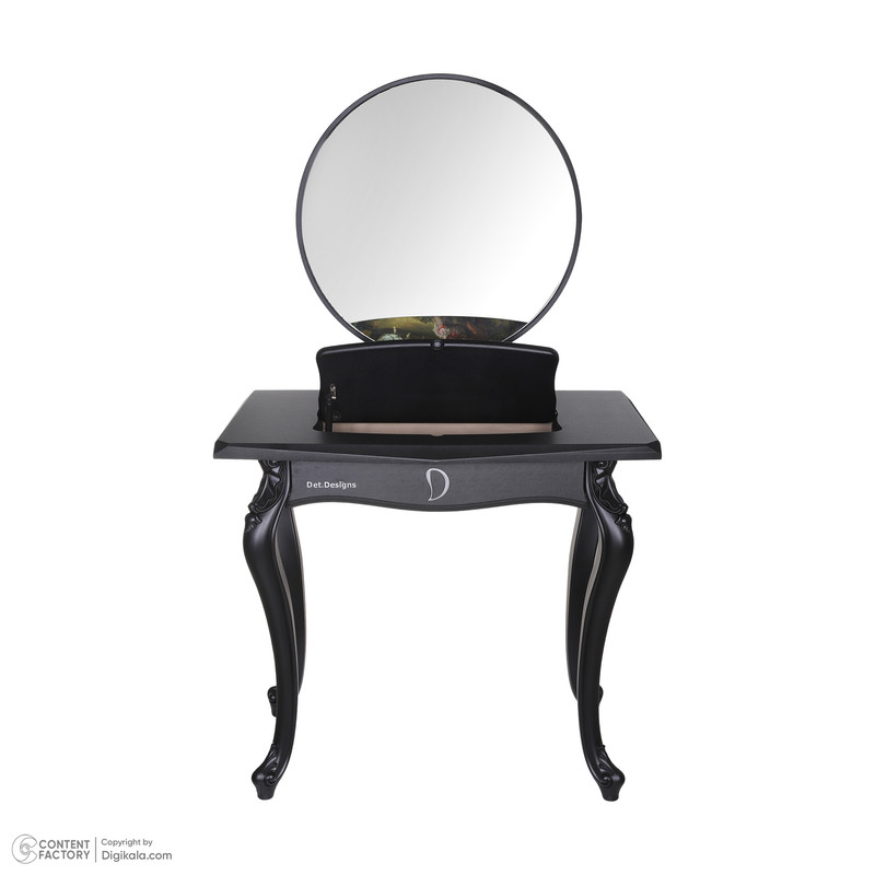 این محصول با هدف تامین نیاز خانم ها درخانه و آرایشگاه در نظر گرفته شده است. فضای کمی اشغال میکند. اما در خود فضای نسبتا بزرگی دارد. برخلاف معمول آینه کنسول های موجود در بازار کشو ندارد و درب باکس آن از بالا باز میشود. فضایی به اندازه میز نیاز نیست تا کشو بیرون بیاید و در هر جایی جای میگیرد. از نکات مهم در طراحی این محصول چرخش آینه آن است که امکان چرخیدن به هر سمت را دارد. برای هر شخص با هر قدی قابل استفاده است. اگر قد کاربر بلند باشد آینه به سمت بالا خم می شود و اگر کودک و خردسال باشد آینه به سمت پایین خم می شود. در واقع با یک آینه به قطر 55 سانتیمتر از روی پا تا موی سر در آینه دیده می شود. از دیگر نکات مهم ، درب باکس این محصول است که از بالا بصورت لولای مخفی با جک گازی کنترل می شود و برای کودکان ایمن است. در ضمن هنگام باز و بسته شدن بی صدا عمل می کند. نکته آخر اینکه پایه های این میز و آینه باز و بسته می شود و مونتاژ آن بسیار آسان است و در صورت نیاز قطعات به راحتی تعویض می شوند. جنس پایه ها ABS می باشد که در مناطق رطوبتی ، مقاوم است. اما سورپرایز آخر اینکه روی درب این محصول یک نقاشی دوره کلاسیک اجرا شده که کاملا آن را از دیگر محصولات متمایز کرده است و به عن یک وسیله دکوراتیو در خانه می درخشد.