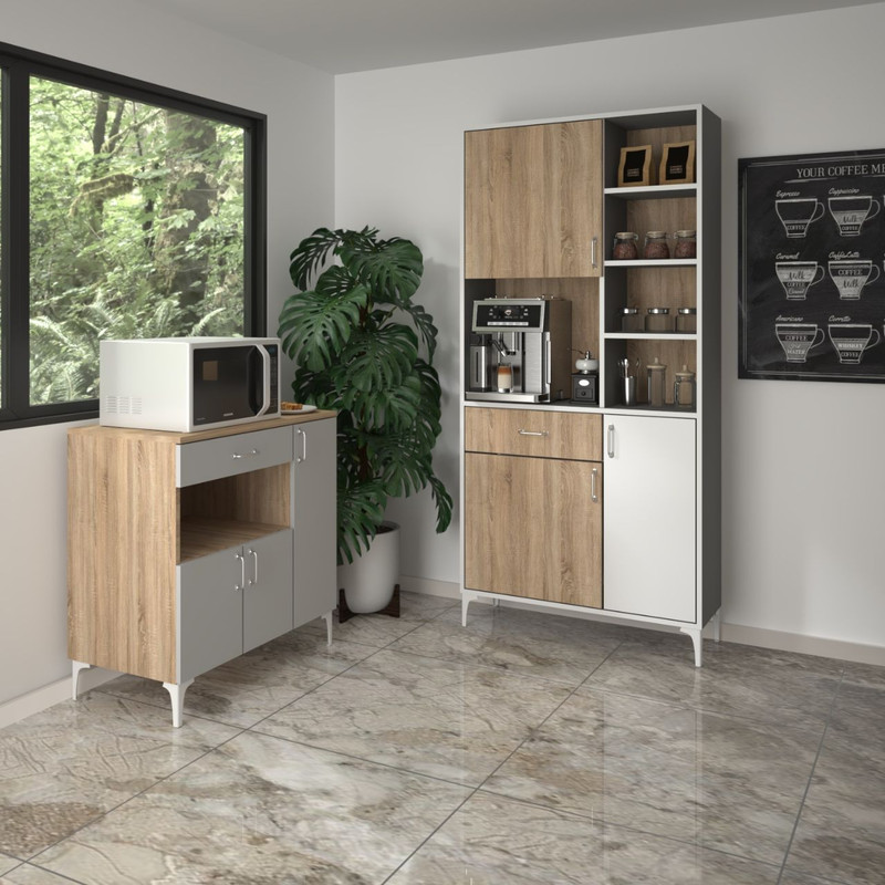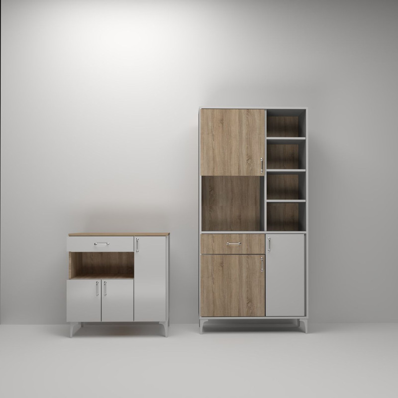 کافیبار مدرن الی، شامل دو تکه، یک ویترین بار و یک کنسول میباشد. مشخصات ویترین بار به صورت ابعاد 190 در 90 به عمق 40 سانتیمتر، ارتفاع پایه 10 سانتیمتر، دارای سه درب، یک کشو، پنج شلف و یراق آرامبند و رنگ: ترکیب سفید و چوب میباشد. مشخصات میز (کنسول) مدرن الی به صورت ابعاد 100 در 90 به عمق 40 سانتیمتر، ارتفاع پایه 10 سانتیمتر دارای سه درب، یک کشو و یک شلف، بدنه تمام امدیاف و رنگ: ترکیب سفید و چوب میباشد.