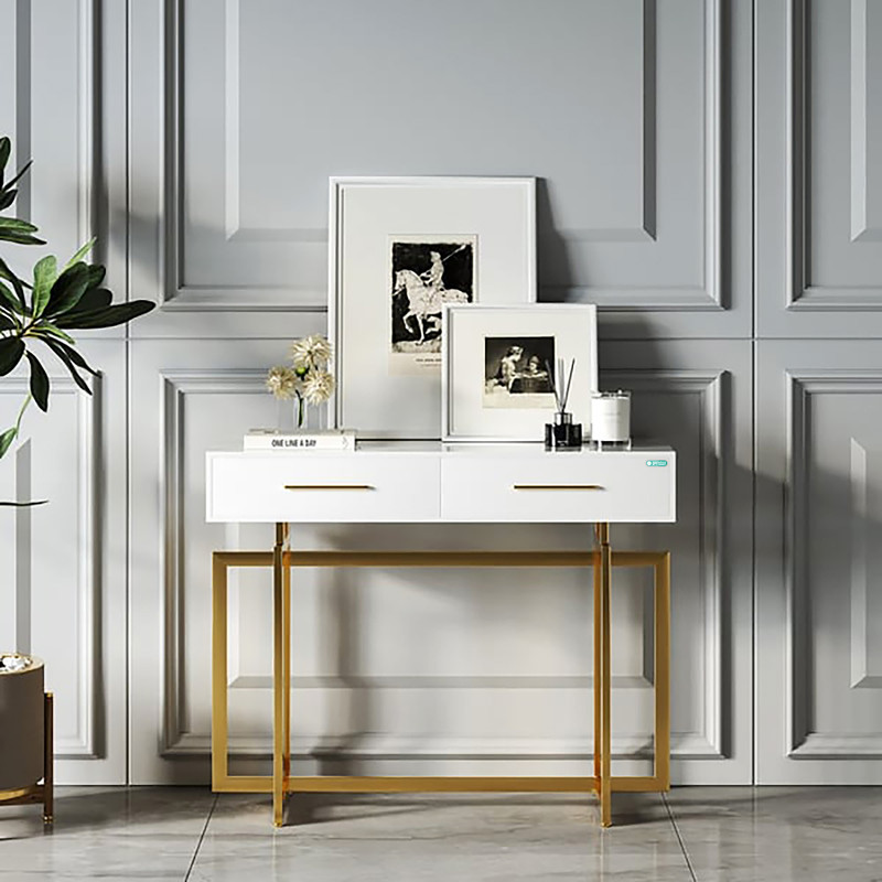 کنسول مدل B101 با ظاهری ساده و زیبا، مناسب دکوراسیون منزل یا اداری با طراحی مدرن است. این کنسول دارای دو کشو و پایه های فلزی بوده و ترکیب رنگی متنوعی دارد. ابعاد: طول 100سانتی متر - عرض 30سانتی متر - ارتفاع 80 سانتی متر جنس محصول ام دی اف می باشد.