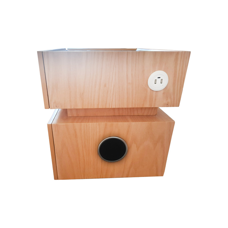میز پاتختی هوشمند که به تازگی وارد بازار شده است. دارای دو کشو می باشد که کشوی پایین دارای قفل رمزدار است. قسمت روی پاتختی چراخ خواب با سه رنگ آفتابی- مهتابی و ترکیبی تعبیه شده است. دو عدد اسپیکر بلوتوثی در کناره های پاتختی وجود دارد. دارای اسپیکر بلوتوثی و شارژ وایرلس می باشد. دارای شارژ سریع و نوع c و usb می باشد.