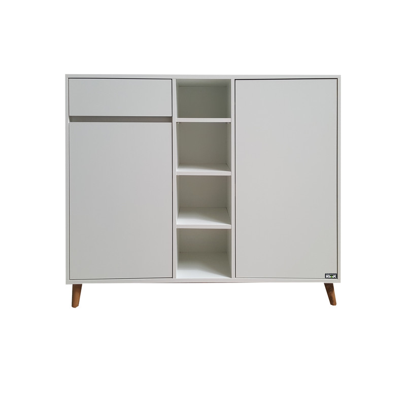 کنسول چوبی کوتوک مدل کارولینا دارای پایه های چوبی، دو باکس طبقه دار ، یک باکس چهار طبقه بدون درب ، یک کشو و صفحه به طول 130 سانتیمتر، فضای کافی را برای چیدن ظروف و آینه در اختیار شما قرار می دهد. جنس محصول ملامینه پویا میباشد.