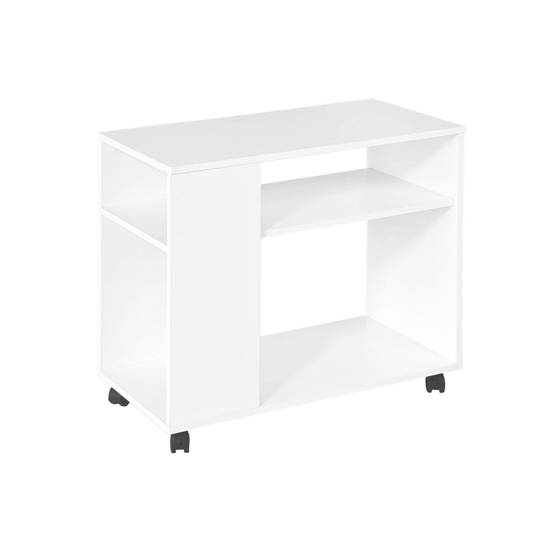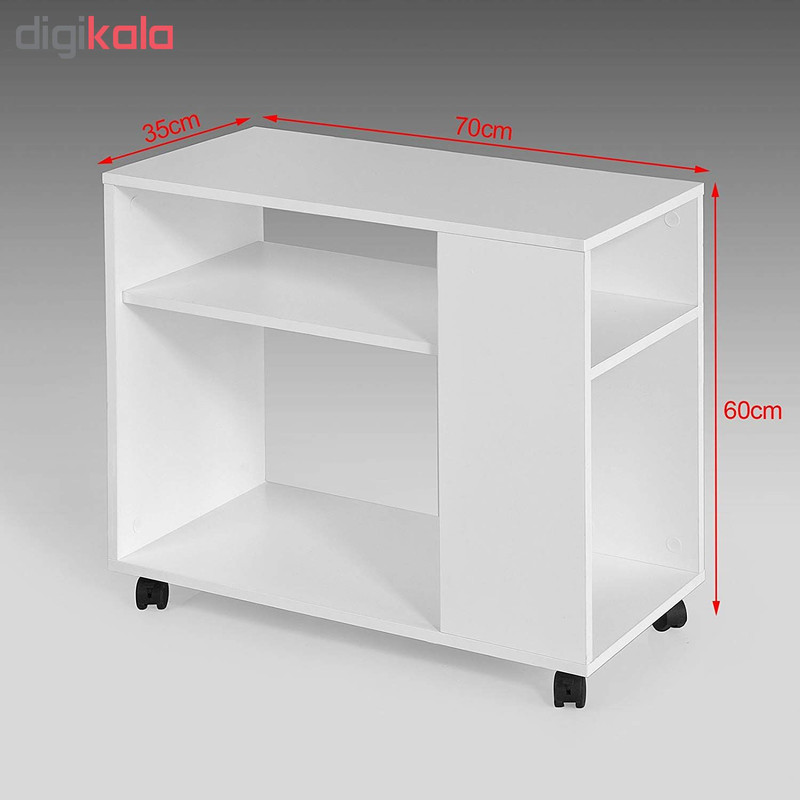 این مدل میز در کنار مبل یا تختخواب قرار می گیرد همانطور که در عکسها مشخص است در طبقات آن می توان کتاب یا دکور یا وسایل مورد نیاز قرار داد و همچنین در مواقع نیاز از سطح میز برای استفاده وسایلی مانند لپ تاب، بشقاب، یا لیوان و... استفاده نمود. میز کنار مبلی دارای پایه های چرخ دار و ترمز دار است در تمام نقاط خانه به راحتی جابجا می شود.