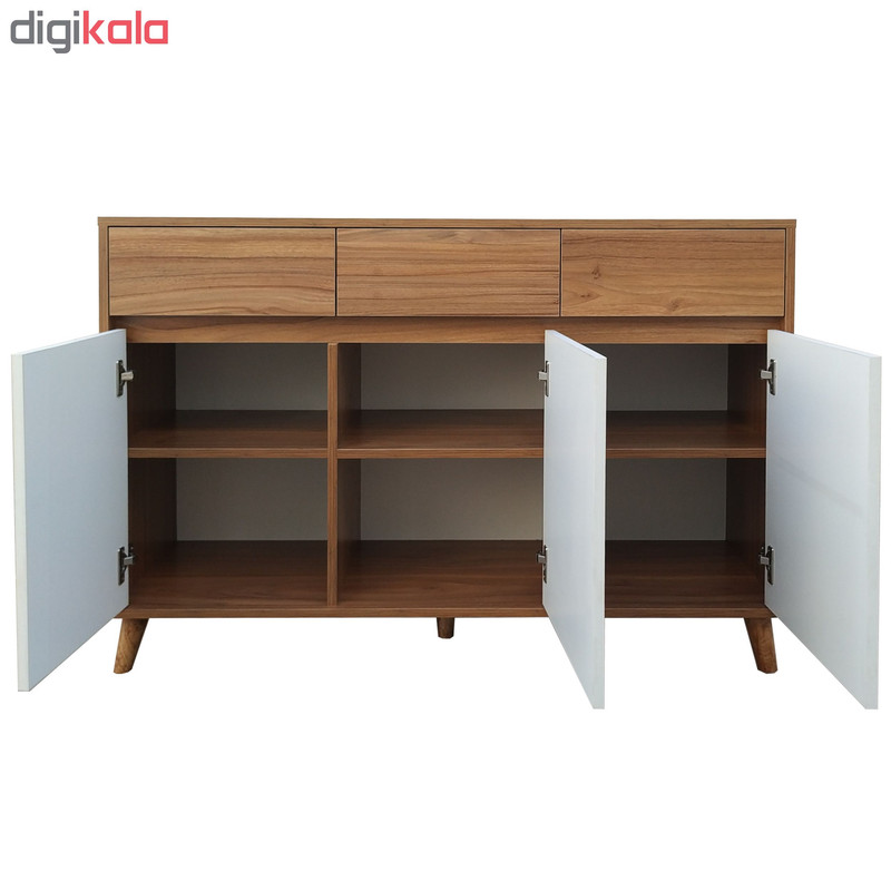 کنسول دکوراسیون مدرن هادیذ مدل کالچو با لبه های pvc شده و تولید شده با ماشین آلات تمام اتوماتیک میباشد. این محصول دارای پایه های چوبی با سه کشو ، سه باکس طبقه دار و صفحه به طول 120 سانتیمتر، فضای کافی را برای چیدن وسایل پذیرایی و آینه و شمدان در اختیار شما قرار می دهد.