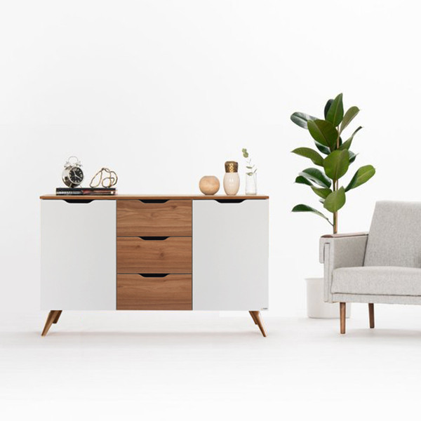 کنسول مدل آلدو، وسیلهای مدرن و زیبا برای کاربرد بخشیدن به فضای خالی خانه یا محل کار شما است. امروزه در طراحی وسایل خانه، به دلیل کوچکتر شدن محل زندگی و کار انسانها، علاوه بر ظرافت و شیک بودن، جنبهی کارآمدی و جادار بودن اثاثیه نیز مورد ملاحظه قرار میگیرد. طراحی این محصول به گونهای است که میتوان آن را در هر موقعیت مکانی استفاده کرد. در تولید این کنسول با طراحی میمنیمال و مدرن، سعی شده تا وسیلهی خوبی برای قرار گرفتن و جا دادن وسایل تزئینی و کاربردی شما ارائه شود. بدنهی این کنسول از چوب باکیفیتی ساخته شده است که به راحتی میتواند با دیگر اسباب محل زندگی یا کار شما، ست شود. این محصول دارای دو در و سه کشو است که میتوان وسایل زیادی را در آنها قرار داد و به راحتی دوباره از آنها استفاده کرد. این کنسول انتخابی مطمئن و امن برای افی است که کیفیت، کارایی و زیبایی ظاهری برای آنها به یک اندازه اهمیت دارد.