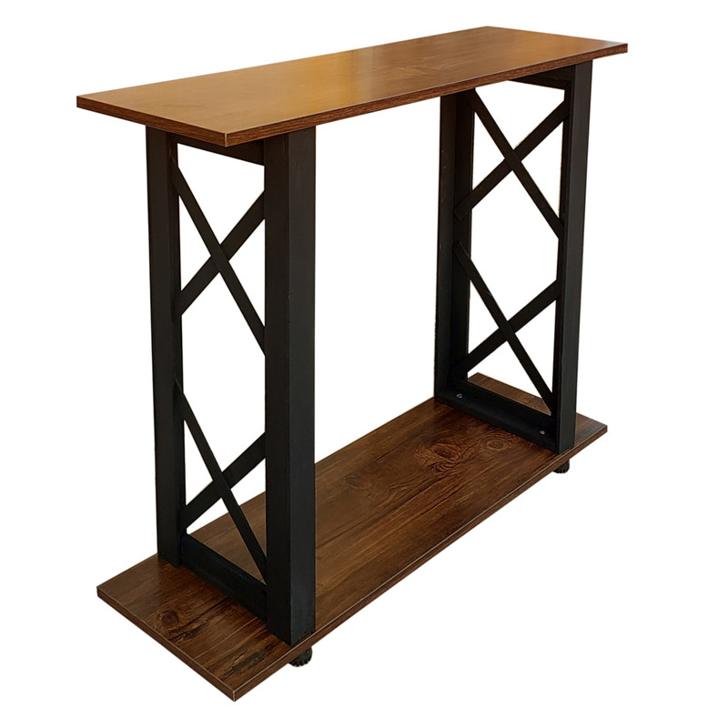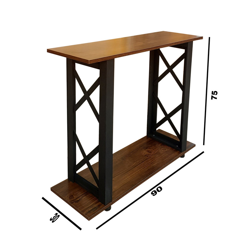 طراحی زیبا، استحکام و سادگی از مزایای این میز کنسول است. این کنسول از جنس ملامینه است که لبه های آن پی وی سی شده است. پایه های این میز از ام دی اف خام هشت میلیمتری ساخته شده است که با رنگ اکریلیک مشکی رنگ آمیزی شده است. پایه های پلاستیکی کف آن قابلیت تراز کردن میز را می دهد. این میز با 8 پیچ به راحتی مونتاژ می شود. لینک فیلم آموزش مونتاژ در بسته بندی قرار دارد.