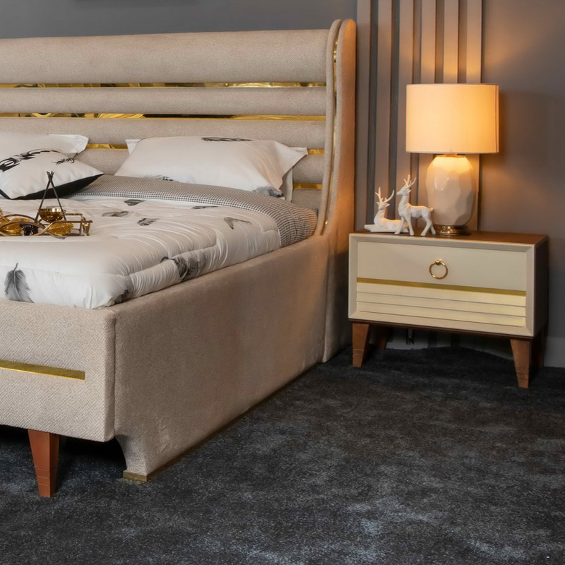 تخت خواب مدل کد 205، یک تخت خواب سبک مدرن بسیار زیبا، خاص و پر طرفدار می باشد، که با توجه به نوع طراحی و متریال استفاده شده در آن، می تواند هر اتاق خوابی را به زیبایی دکور کند و به آن حس اصالت ببخشد. تخت خواب مدل 205 تلفیقی از چوب سوپر راش گرجستان، ام دی اف واناچای تایلندی، پارچه نانوی وارداتی و رنگ پلی اورتان والرسای اسپانیا می باشد. این تخت خواب دارای یک کف تخت تمام پروفیل آهنی با پایه های پیچی می باشد که از مقاومت و استحکام فوق العاده ای بر خوردار می باشد. سایز تشک این تخت خواب دو نفره 180x200 سانتیمتر می باشد. طراحی زیبا و کیفیت بالای این تخت خواب باعث شده تا مورد پسند هر سلیقه ای قرار گیرد. در زیر سطح پارچه ای اسفنج های بسیار با کیفیت و انعطاف پذیری رویکوبی شده است که باعث می شود هنگام استراحت روی تخت خواب از نرمی و لطافت آن لذت ببرید.در قسمت سرتخت و کلگی پایین این تخت خواب از ورق های باریک شده پلگسی آینه ای استفاده شده که زیبایی دو چندانی به این تخت خواب بخشیده است.