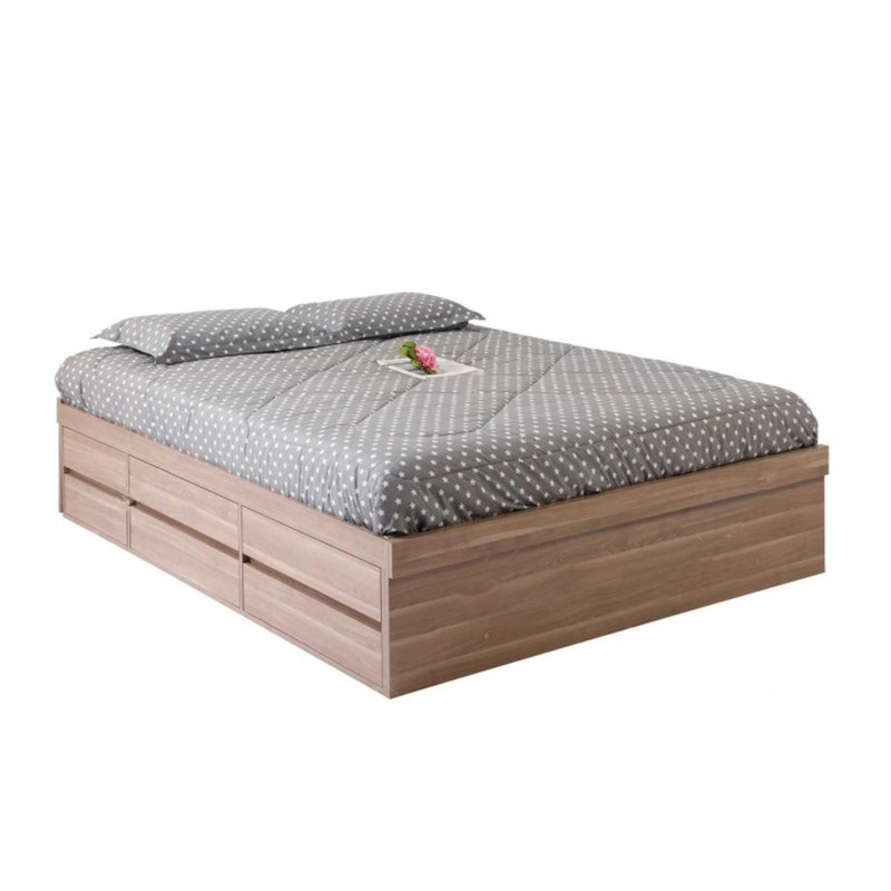 بسیار کار آمد و کاربردی ، ساخته شده از ملامینه دارای ریل های ساچمه ای ، دارای کف تخت نیوپانی و منفصل از تخت خواب ، قیمت اقتصادی در مقایسه با کیفیت به همراه باکس 6 کشو در یک سمت تخت میباشد. این تخت فاقد تشک و بالشت میباشد.