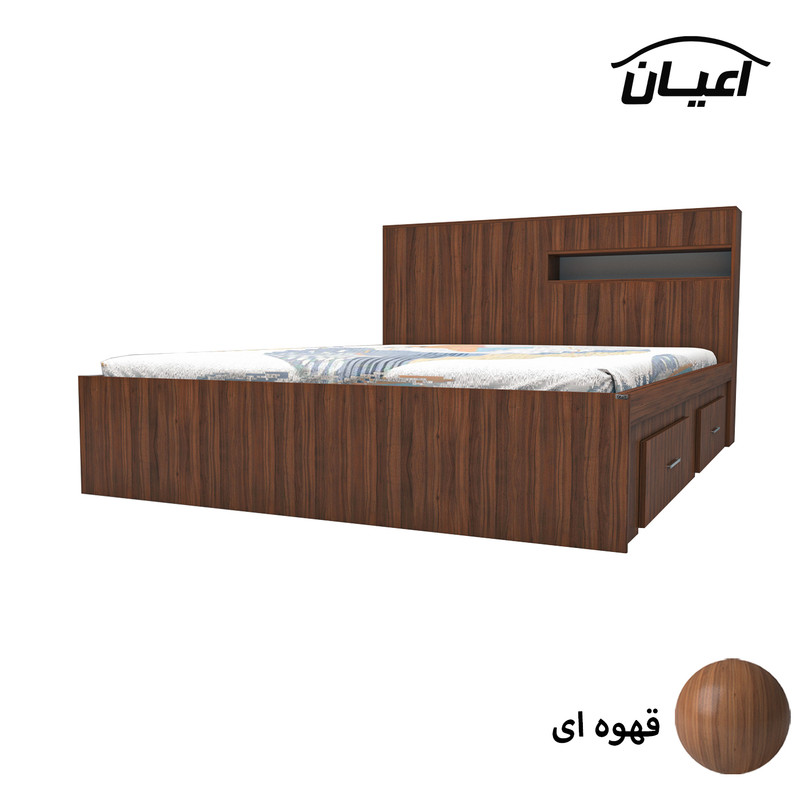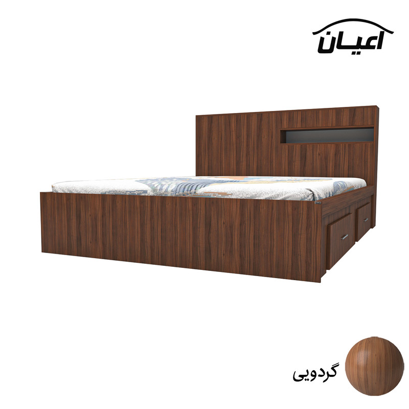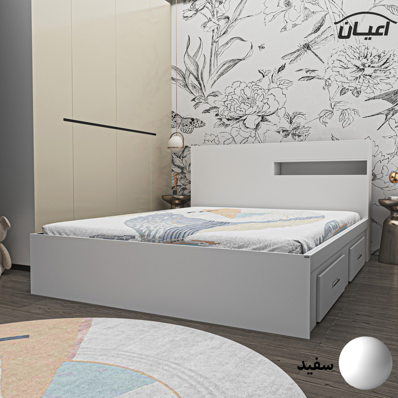 تخت خواب دونفره -جنس نئوپان ملامینه شرکتی.-کلگی یک باکس در نما و از جهت بالای کلگی دارای درب باز شو می باشد. کالا فاقد تشک می باشد-سایز تشک مناسب 160x200سانت است کالا به صورت مونتاژ نشده (جدا از هم) ال می شود - دارای دو عدد کشوی چرخدار که قابل جابجایی است- بسته بندی کالا به صورت چهار آیتمی است - جنس کفی تخت نئوپان به صورت سه تکه است - رنگ بندی کالا در آلبوم قابل مشاهده است(در رنگ های سفید/مشکی/قهوه ای/قهوه ای روشن/قهوه ای تیره (ونگه)/گردویی/طوسی و چند رنگ(سفید و طوسی) تولید می شود)-تنها در صورتی کالای انتخابی مطابق با تصاویر و مشخصات درج شده خواهد بود که هنگام انتخاب، فروشنده رسمی برند که با تیک آبی مشخص شده است را انتخاب نمایید. هنگام خرید و دریافت کالا به بسته بندی و لوگوی برند دقت فرمایید.